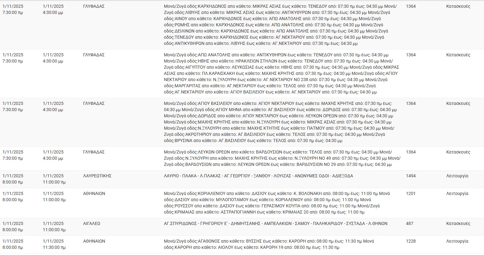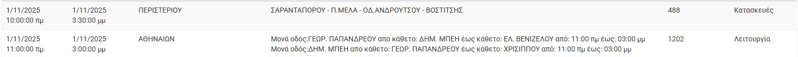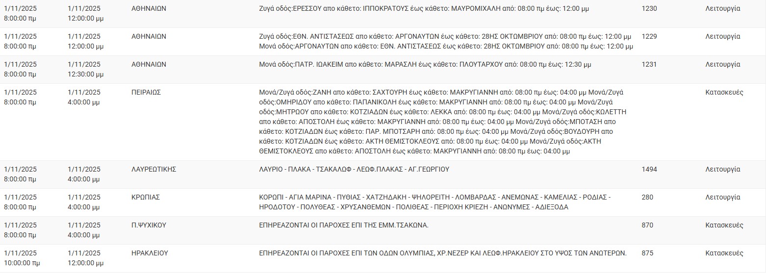 Διακοπές ρεύματος σήμερα (1/11) στην Αθήνα και σε άλλες 7 περιοχές της Αττικής