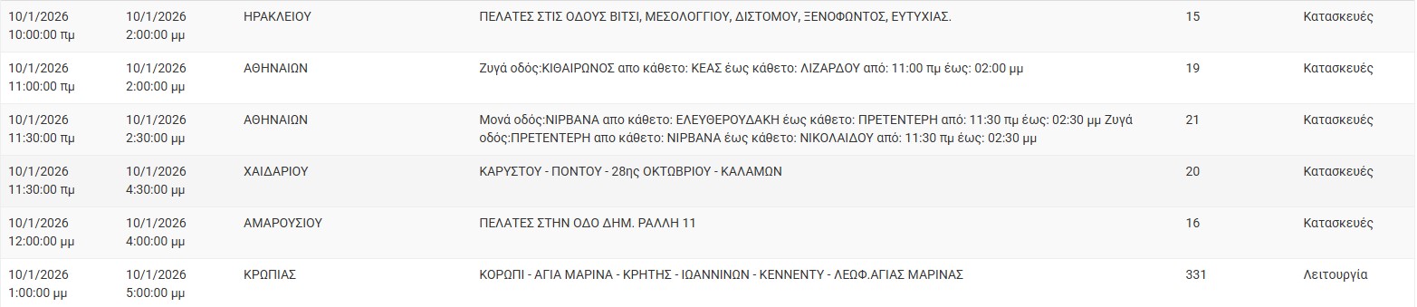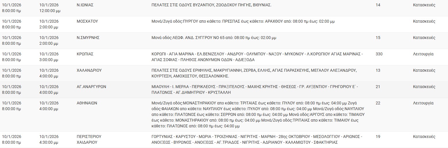 Διακοπές ρεύματος έχει προγραμματίσει για σήμερα, Σάββατο 10 Ιανουαρίου 2026, ο ΔΕΔΔΗΕ σε διάφορες περιοχές της Αττικής.