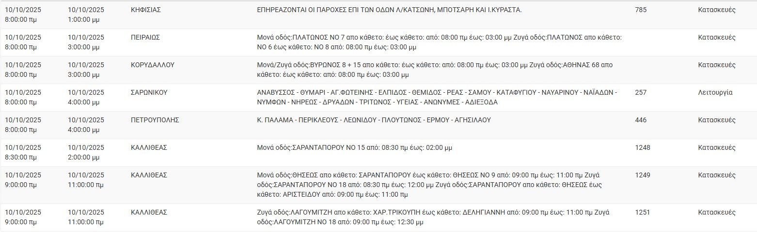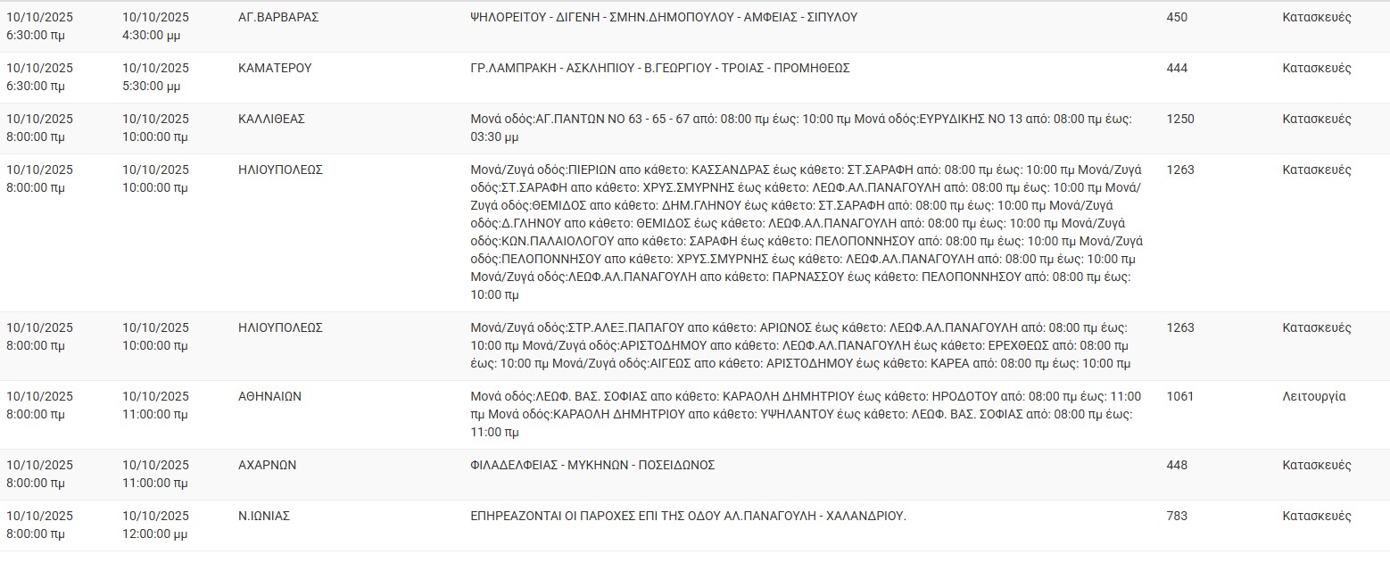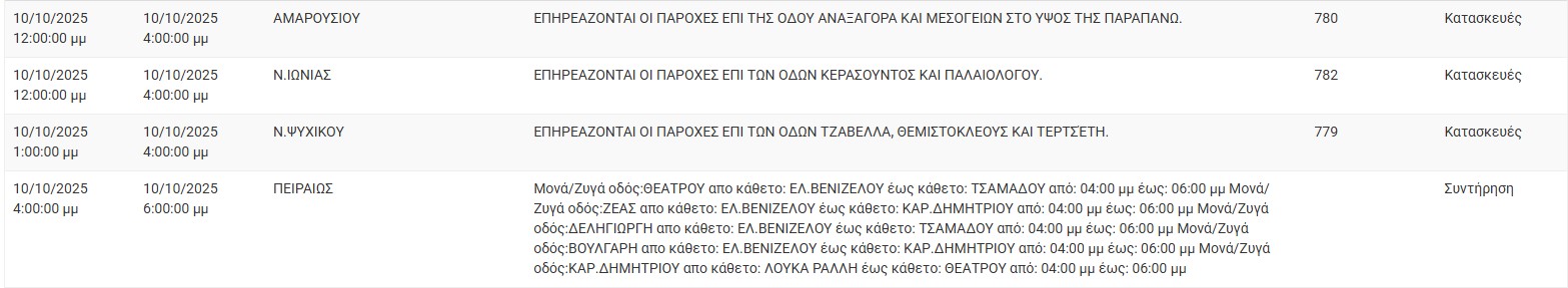 Διακοπές ρεύματος σήμερα (10/10) στην Αθήνα και σε άλλες 18 περιοχές της Αττικής
