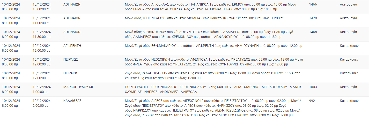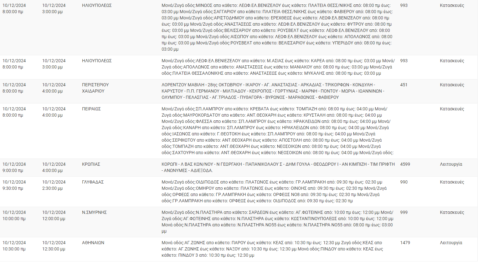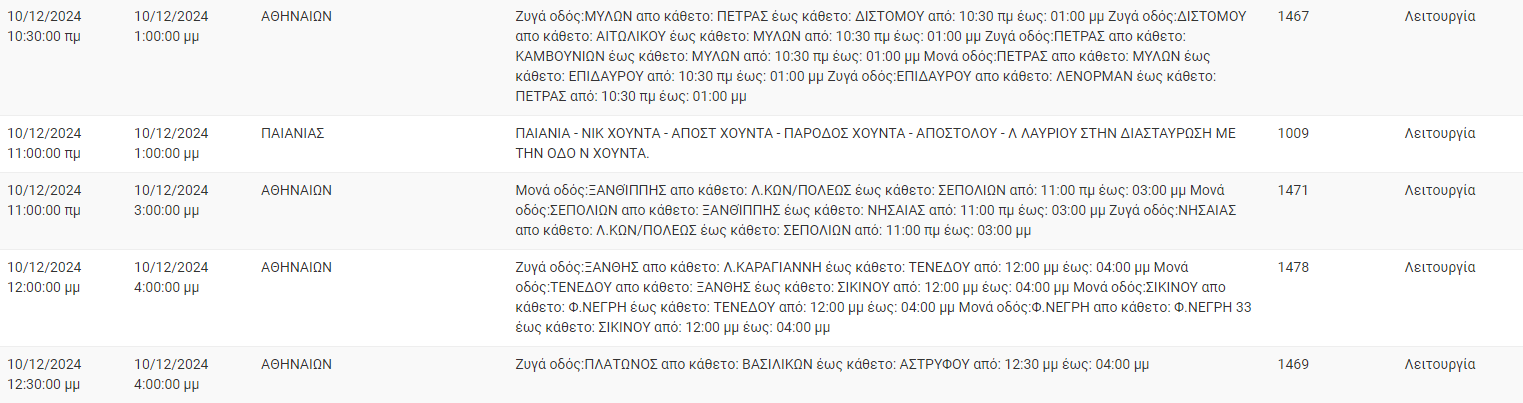 Διακοπές ρεύματος σήμερα (10/12) στην Αθήνα και σε άλλες 11 περιοχές της Αττικής
