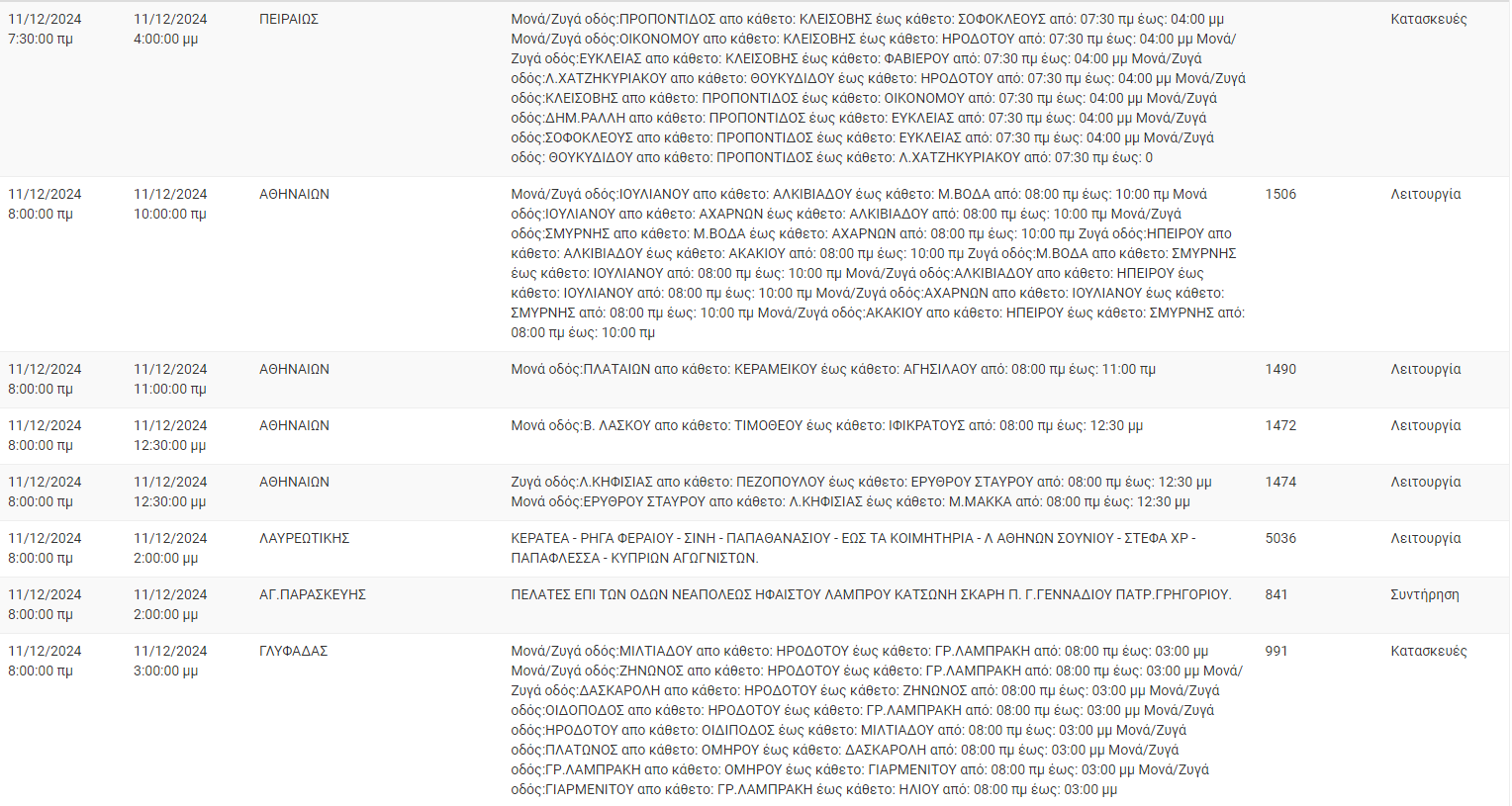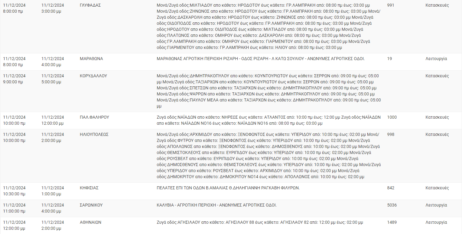 Διακοπές ρεύματος σήμερα (11/12) στην Αθήνα και σε άλλες 11 περιοχές της Αττικής