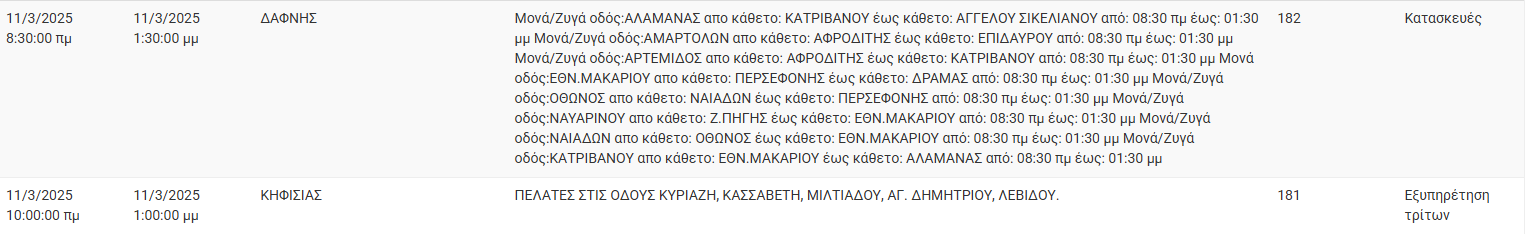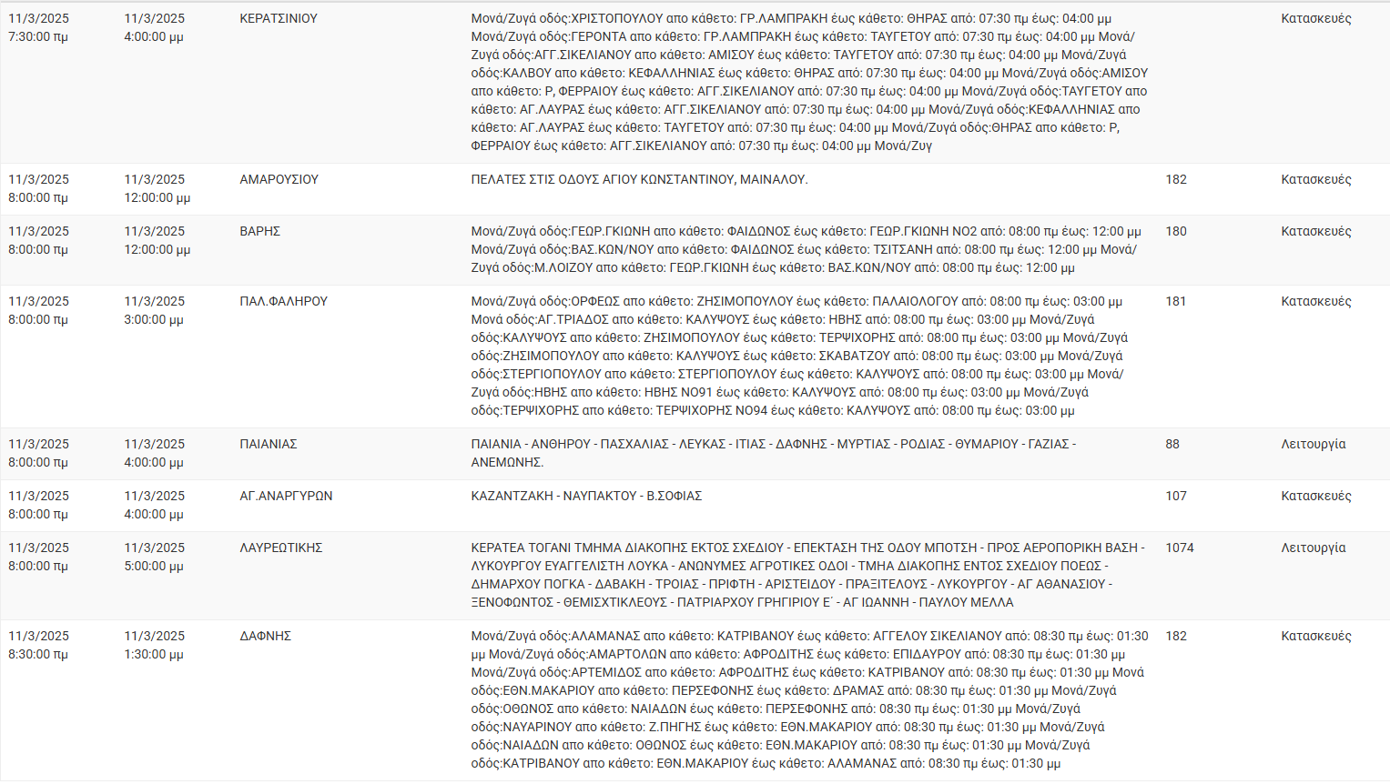 Διακοπές ρεύματος σήμερα (11/3) σε 9 περιοχές της Αττικής