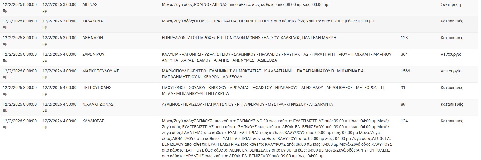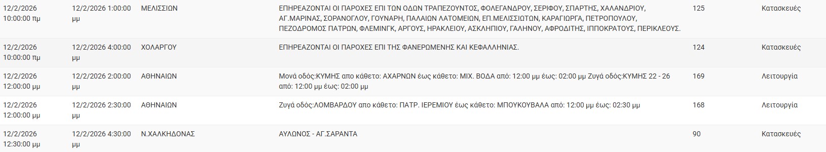 Διακοπές ρεύματος σήμερα (12/2) στην Αθήνα και σε άλλες 13 περιοχές της Αττικής