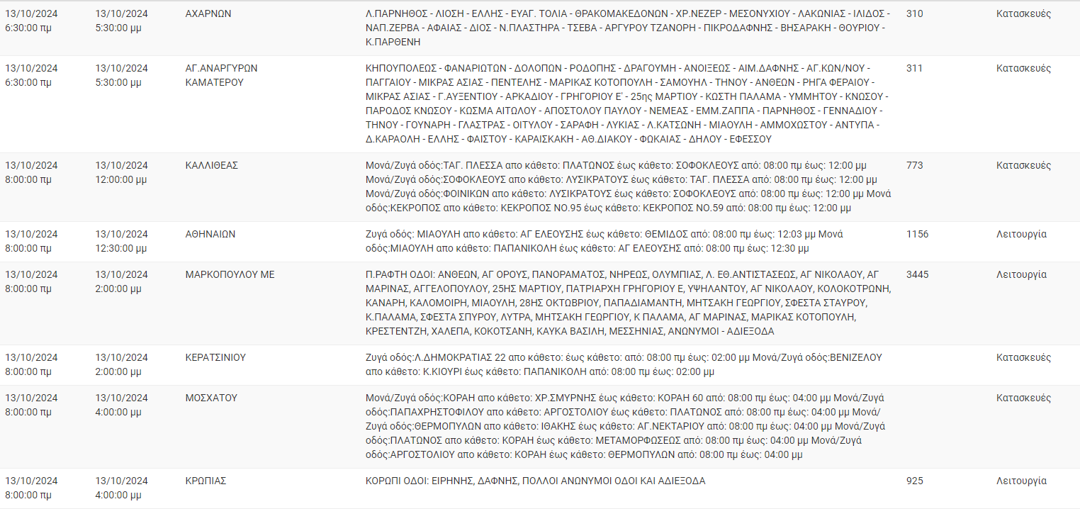 Διακοπές ρεύματος σήμερα (13/10) στην Αθήνα και σε άλλες 8 περιοχές της Αττικής