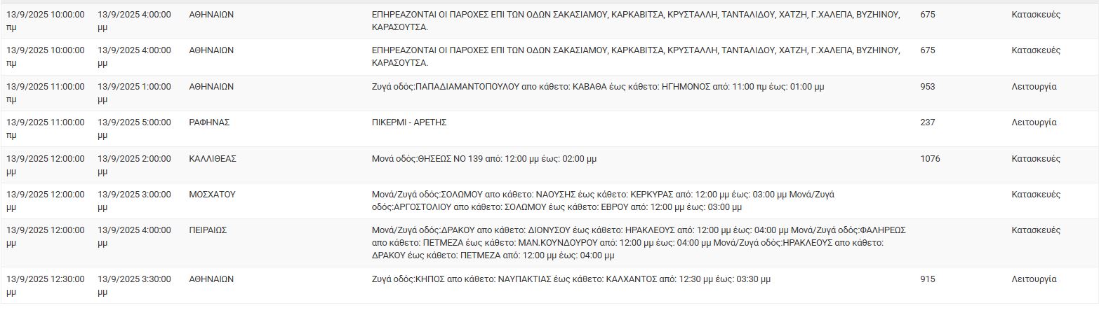 Διακοπές ρεύματος σήμερα (13/9) στην Αθήνα και σε άλλες 6 περιοχές της Αττικής
