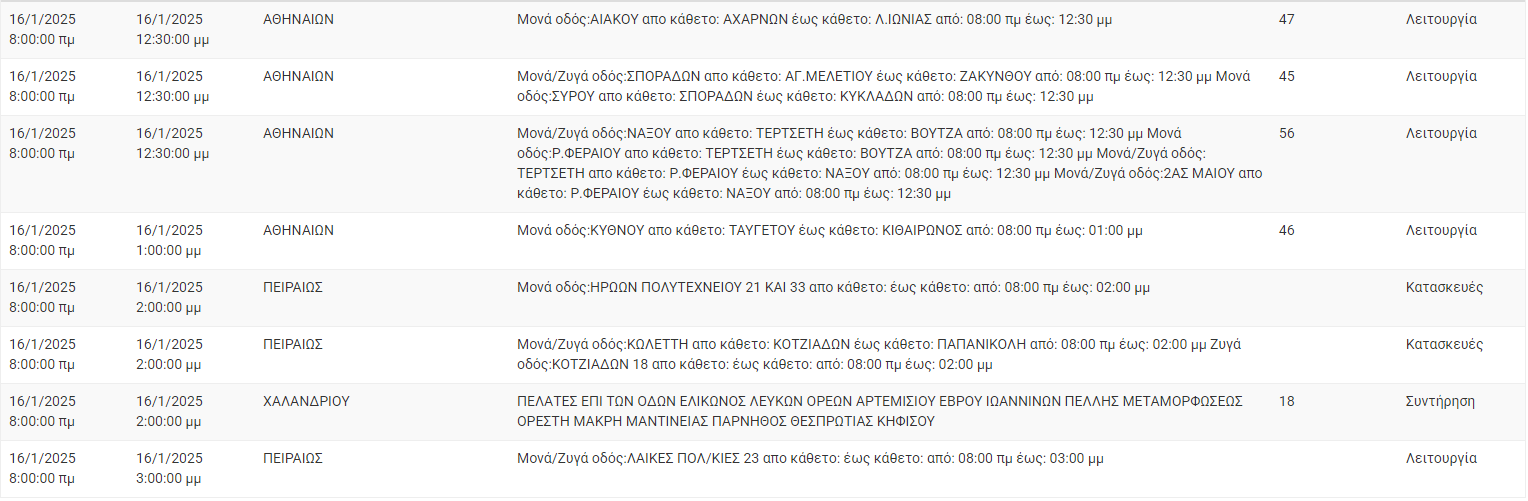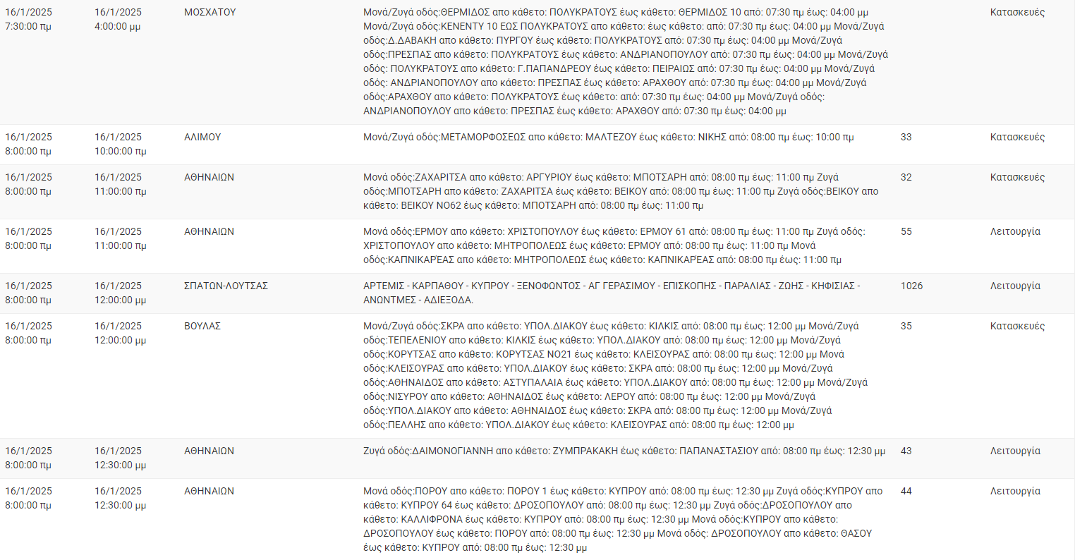 Διακοπές ρεύματος σήμερα (16/1) στην Αθήνα και σε άλλες 11 περιοχές της Αττικής