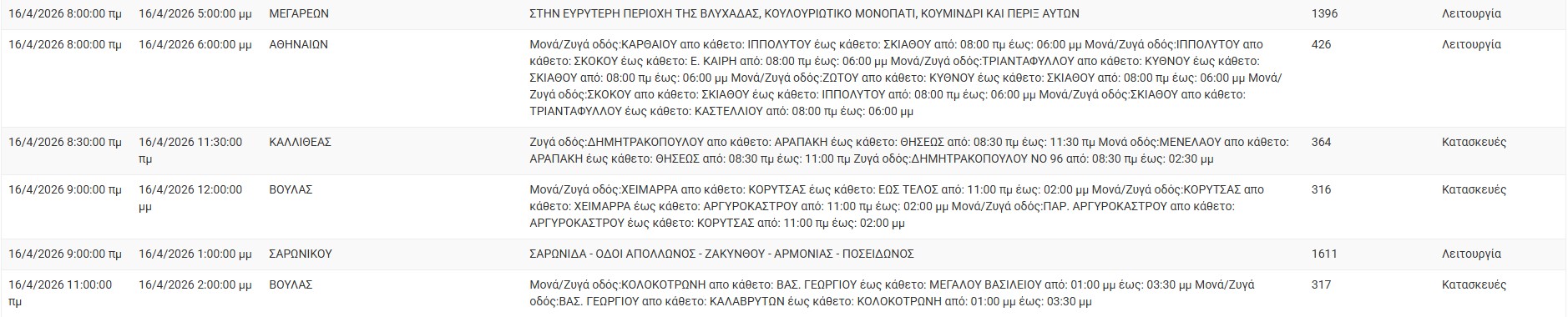 Διακοπές ρεύματος έχει προγραμματίσει για σήμερα, Πέμπτη 16 Απριλίου 2026, ο ΔΕΔΔΗΕ σε διάφορες περιοχές της Αττικής.