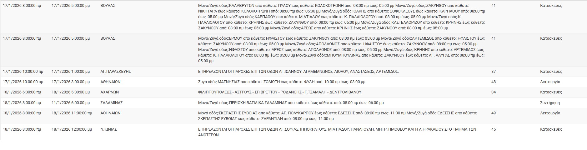 Διακοπές ρεύματος έχει προγραμματίσει για σήμερα, Σάββατο 17 Ιανουαρίου 2026, ο ΔΕΔΔΗΕ σε διάφορες περιοχές της Αττικής.