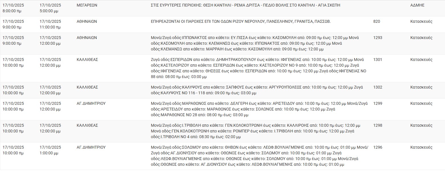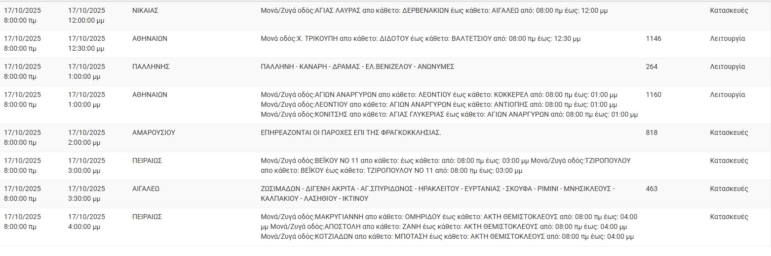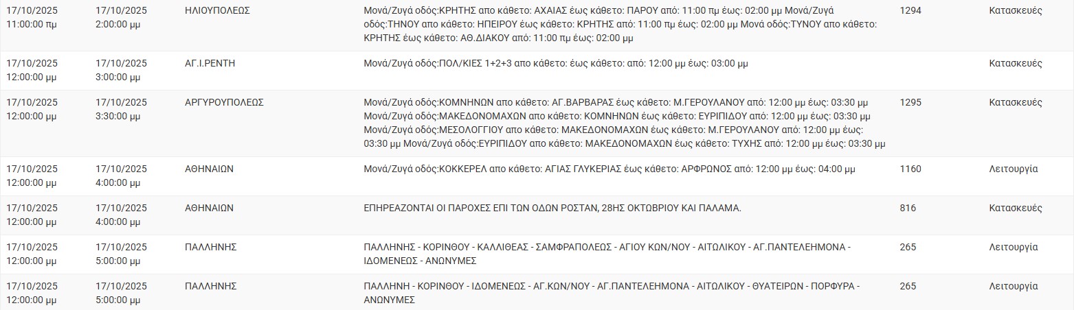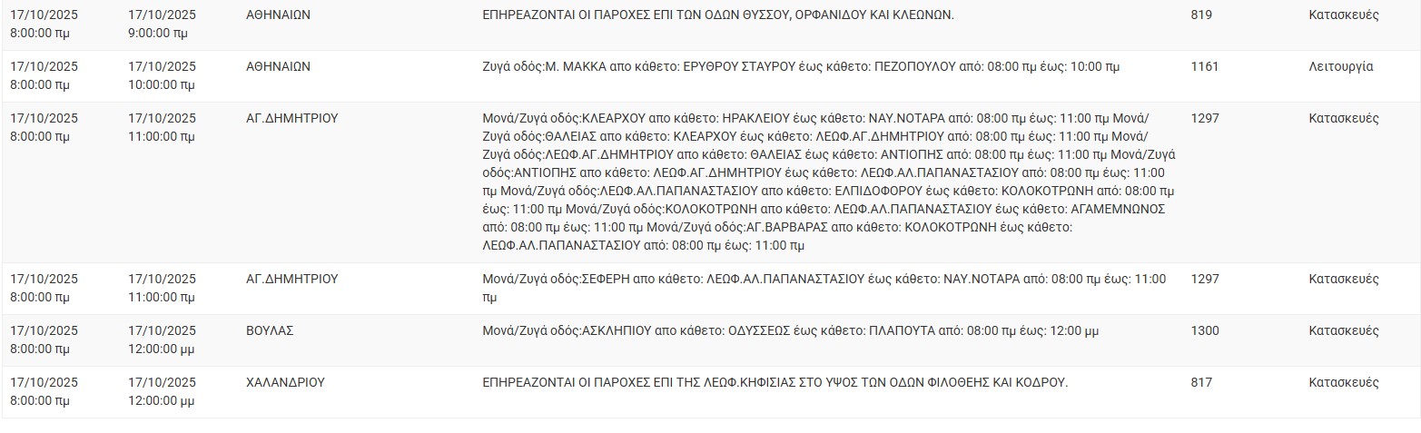 Διακοπές ρεύματος σήμερα (17/10) στην Αθήνα και σε άλλες 13 περιοχές της Αττικής