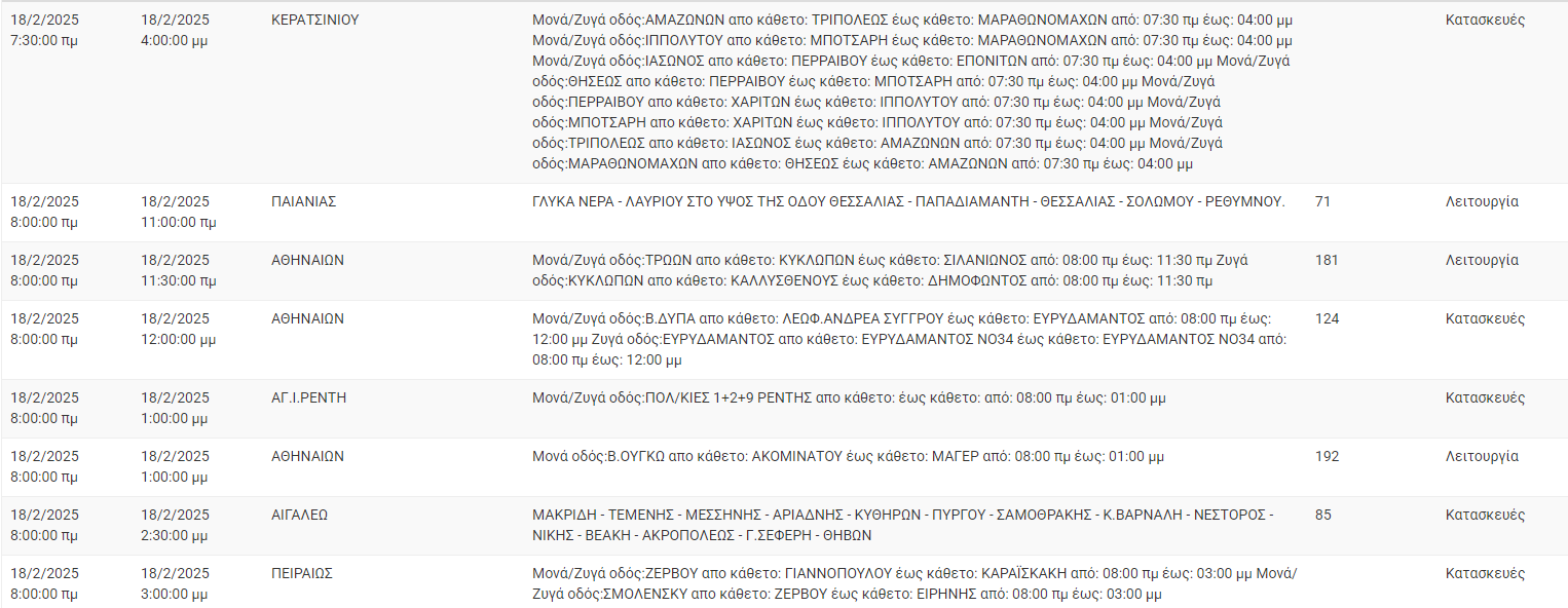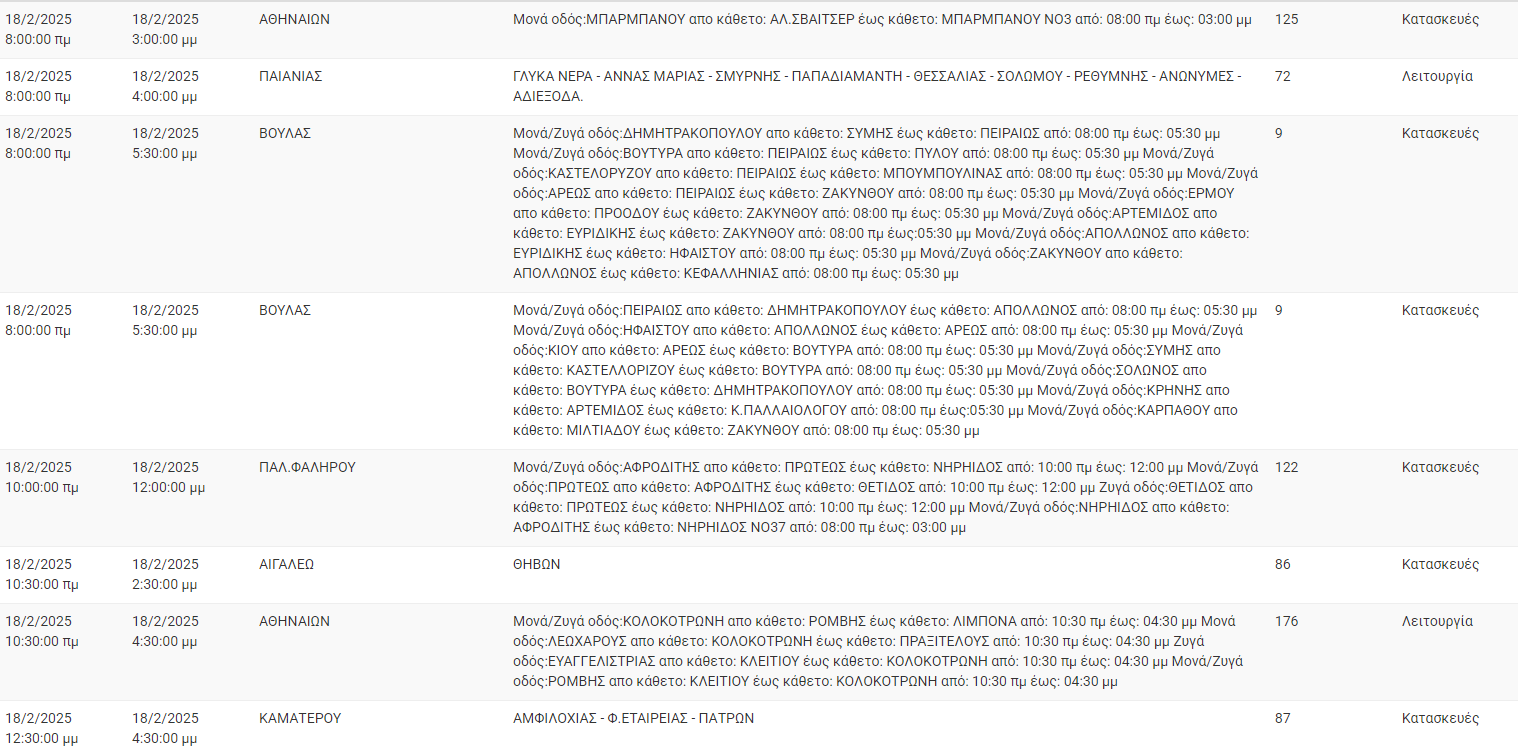Διακοπές ρεύματος σήμερα (18/2) στην Αθήνα και σε άλλες 8 περιοχές της Αττικής