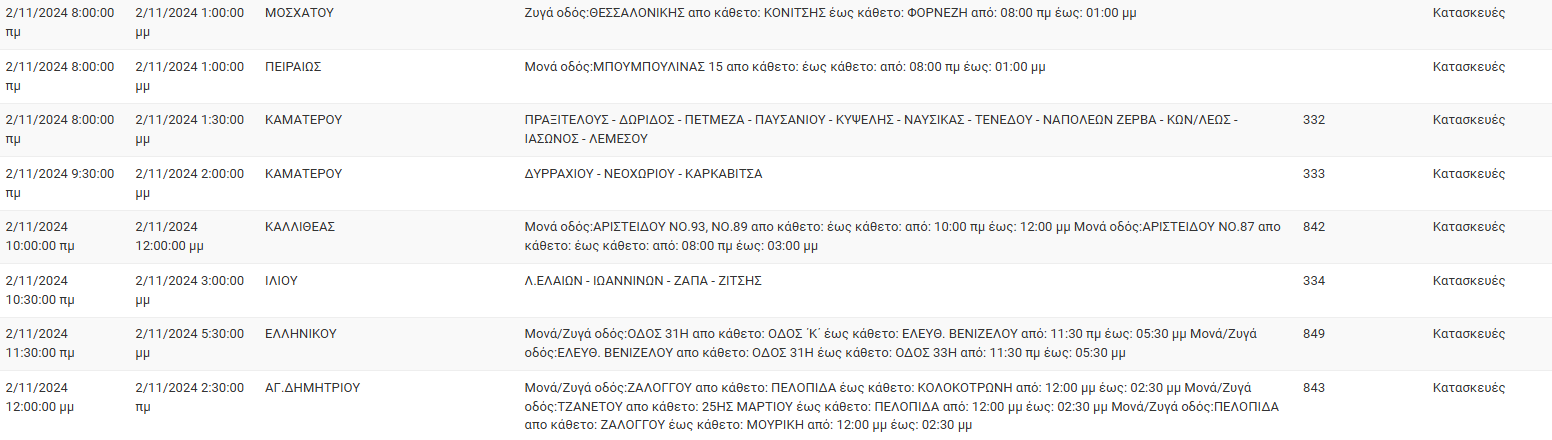 Διακοπές ρεύματος σήμερα (2/11) στην Αθήνα και σε άλλες 9 περιοχές της Αττικής