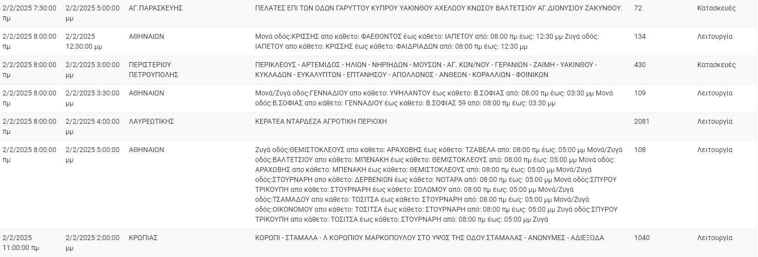 Διακοπές ρεύματος σήμερα (2/2) στην Αθήνα και σε άλλες 5 περιοχές της Αττικής