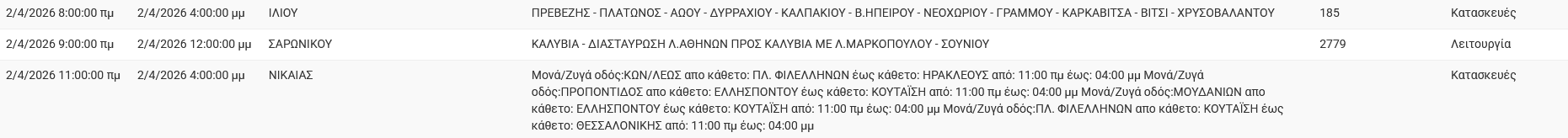 Διακοπές ρεύματος σήμερα (2/4) στην Αθήνα και σε άλλες 5 περιοχές της Αττικής