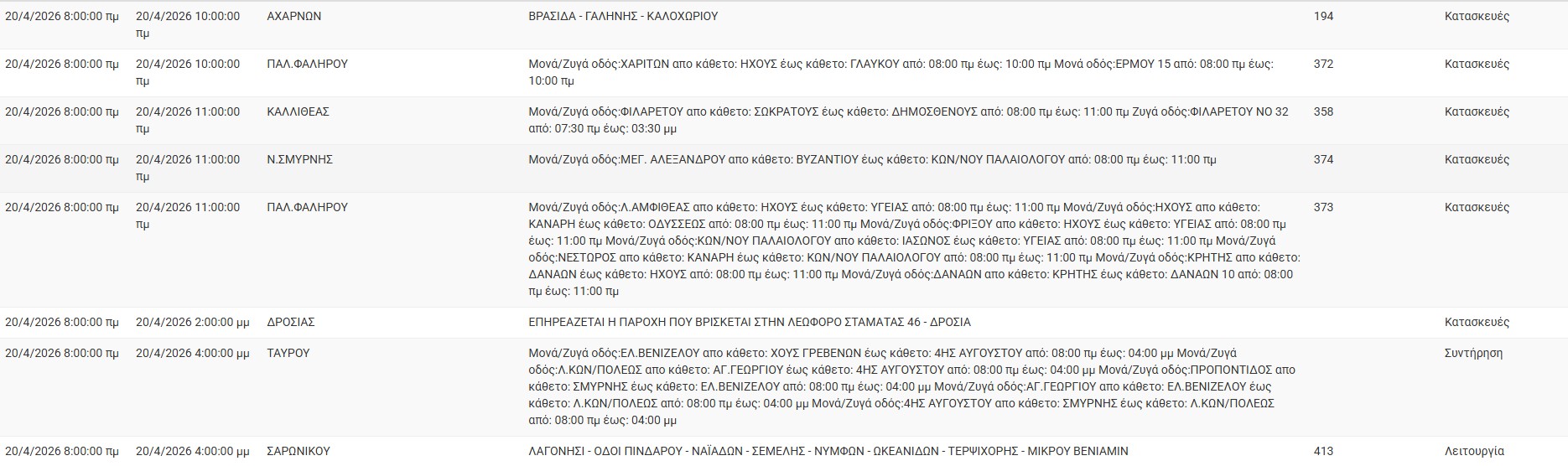 Διακοπές ρεύματος έχει προγραμματίσει για σήμερα, Δευτέρα 20 Απριλίου 2026, ο ΔΕΔΔΗΕ σε διάφορες περιοχές της Αττικής.