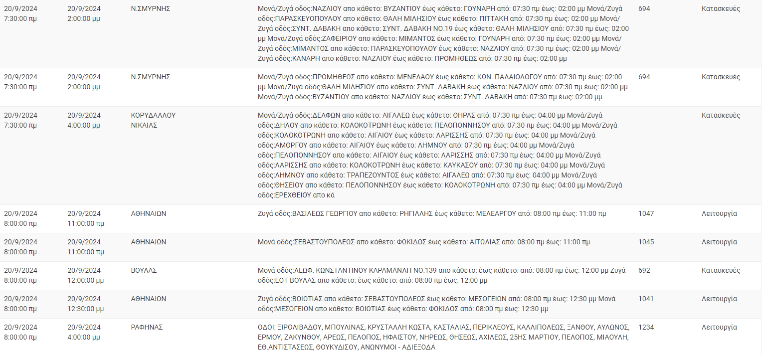 Διακοπές ρεύματος σήμερα (20/9) στην Αθήνα και σε άλλες 11 περιοχές της Αττικής