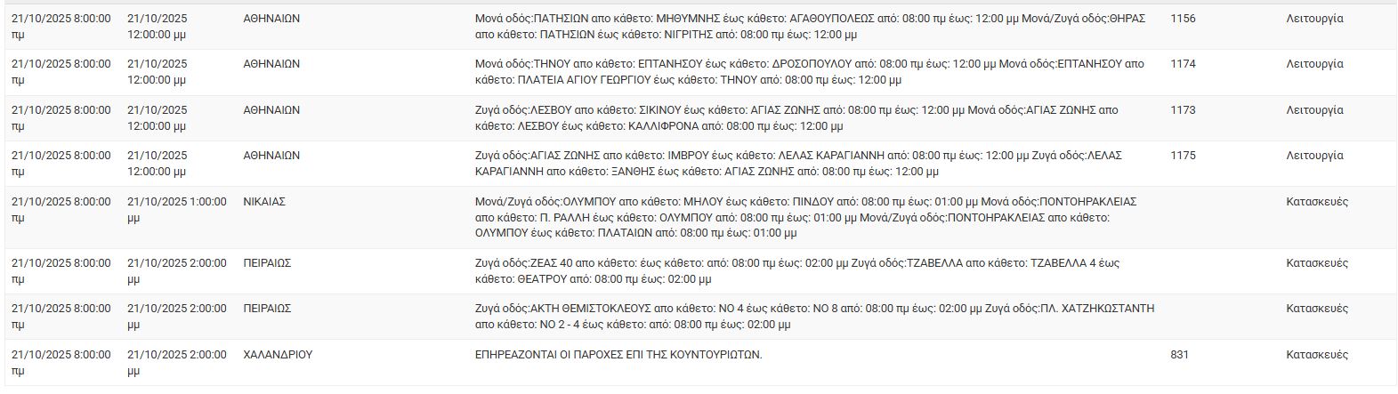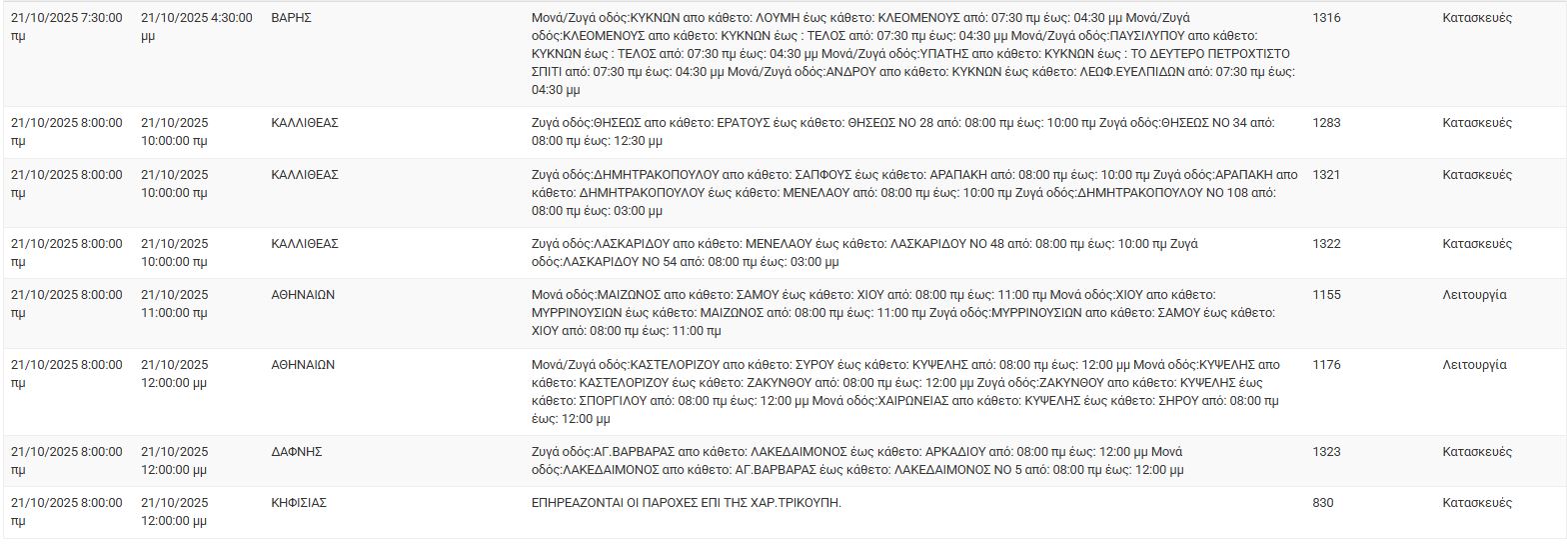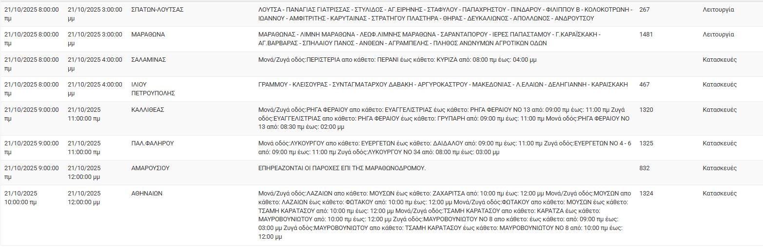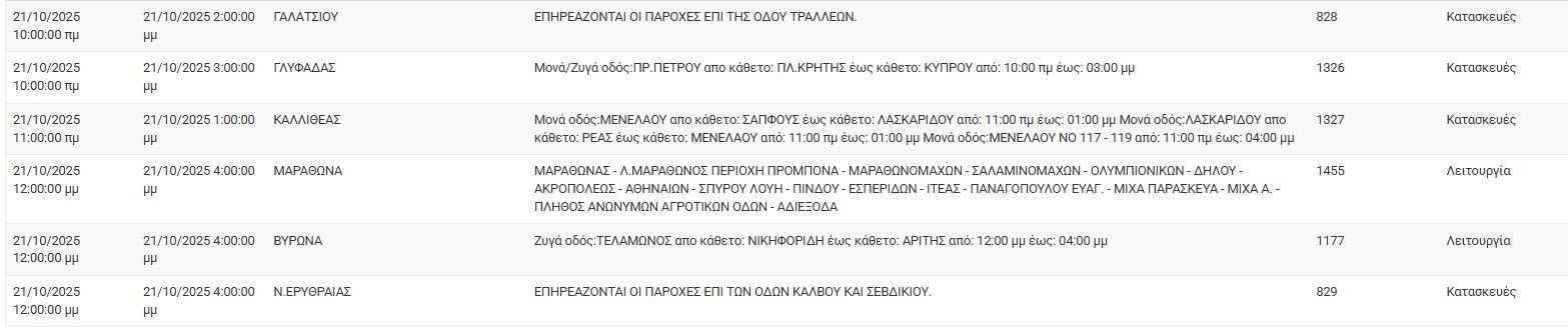 Διακοπές ρεύματος σήμερα (21/10) στην Αθήνα και σε άλλες 17 περιοχές της Αττικής