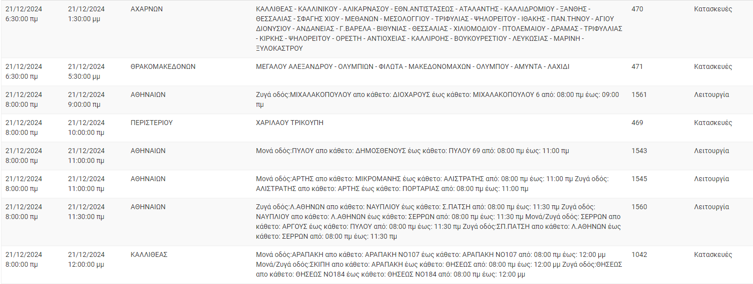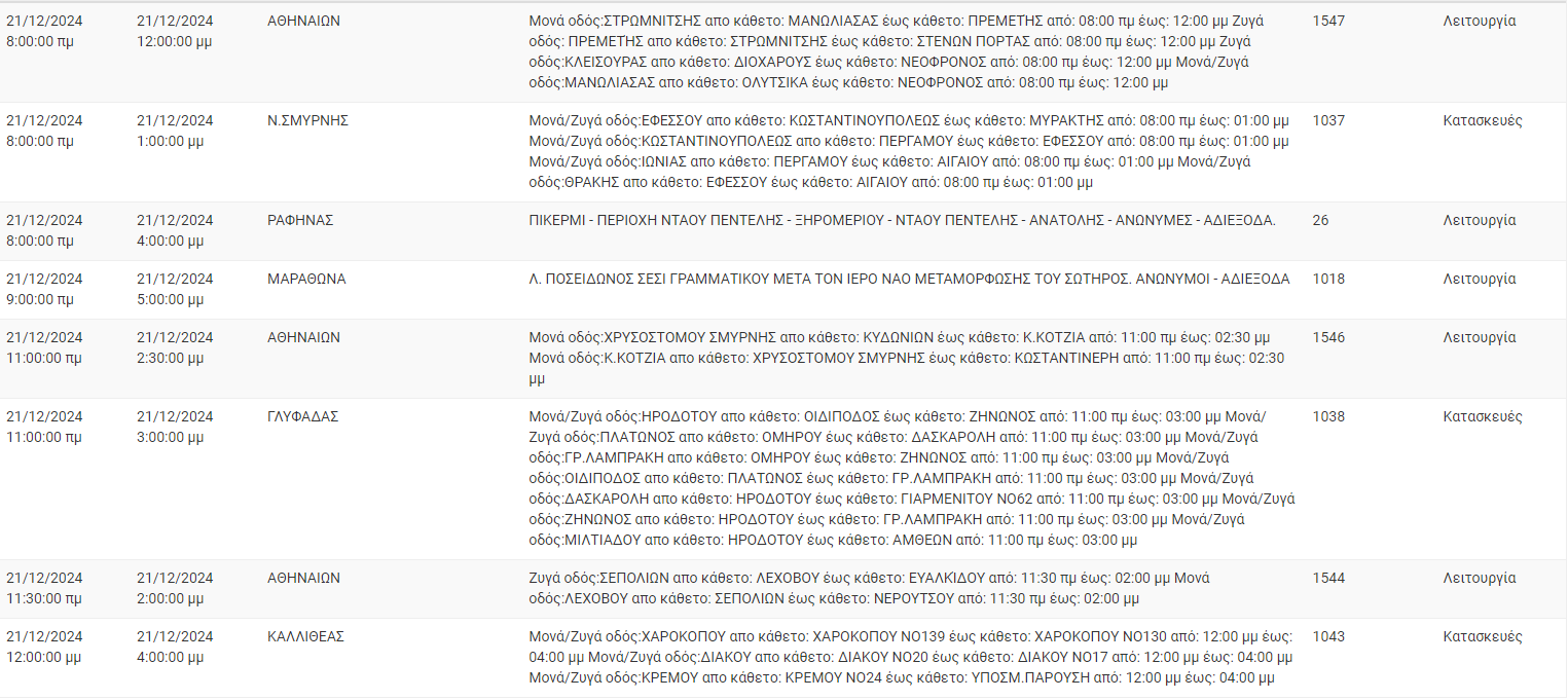 Διακοπές ρεύματος σήμερα (21/12) στην Αθήνα και σε άλλες 8 περιοχές της Αττικής