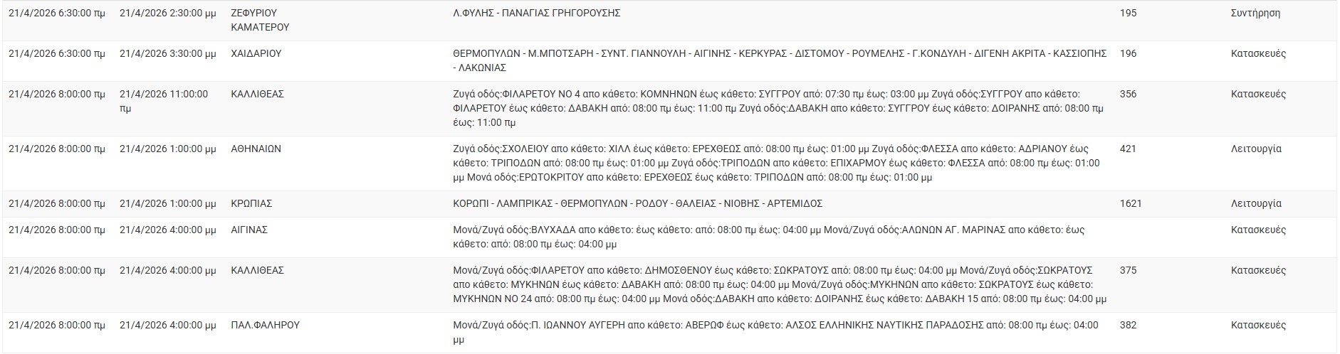 Διακοπές ρεύματος έχει προγραμματίσει για σήμερα, Τρίτη 21 Απριλίου 2026, ο ΔΕΔΔΗΕ σε διάφορες περιοχές της Αττικής.