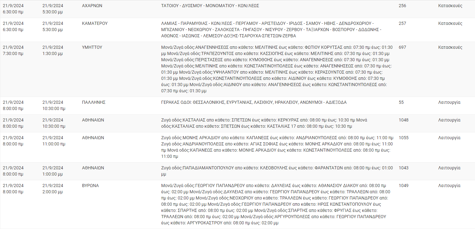 Διακοπές ρεύματος σήμερα (21/9) στην Αθήνα και σε άλλες 8 περιοχές της Αττικής