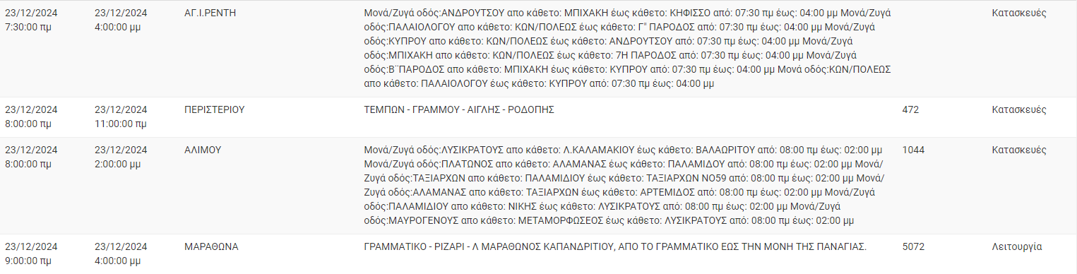 Διακοπές ρεύματος σήμερα (23/12) σε 4 περιοχές της Αττικής