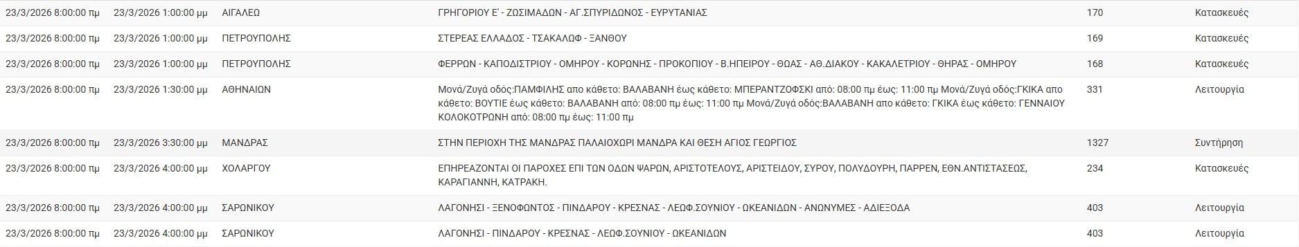 Διακοπές ρεύματος σήμερα (23/3) στην Αθήνα και σε άλλες 13 περιοχές της Αττικής
