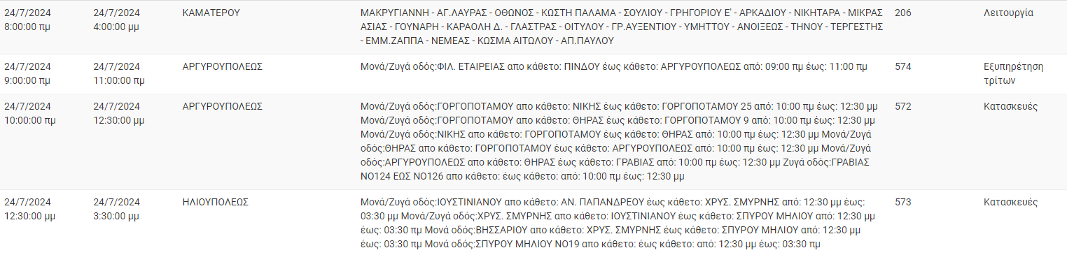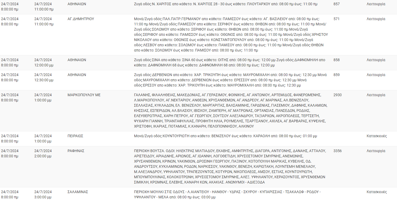 Διακοπές ρεύματος σήμερα (24/07) σε 9 περιοχές της Αττικής