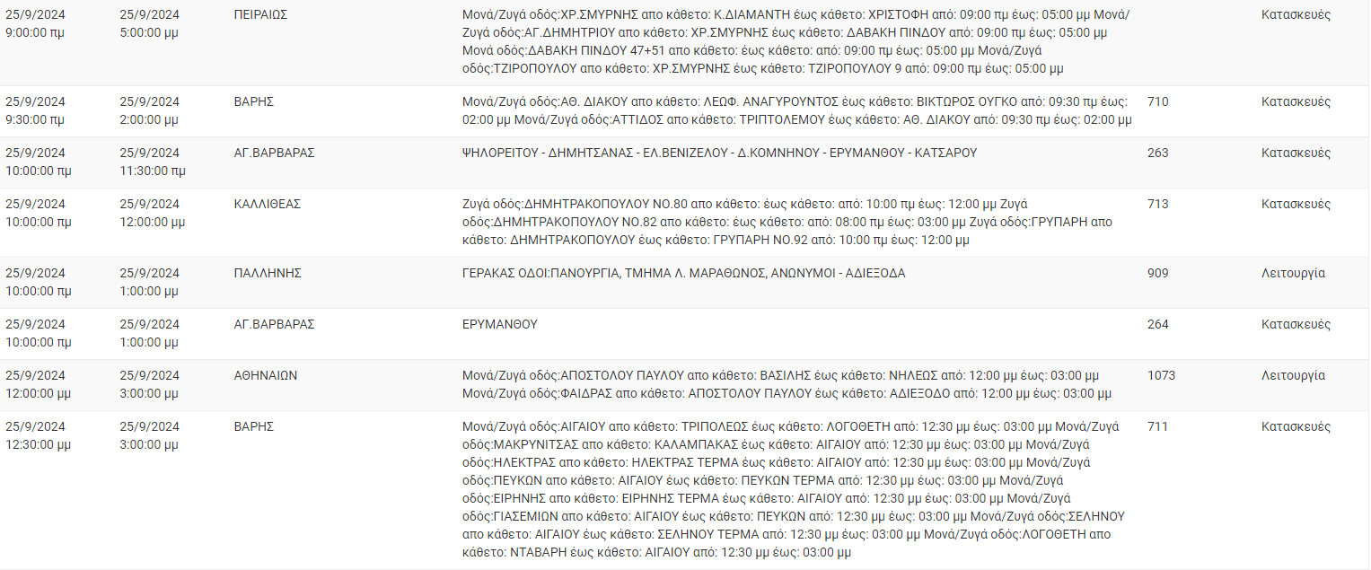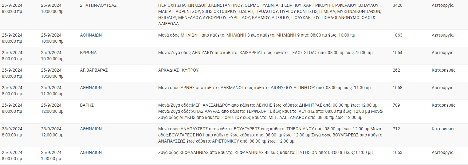 Διακοπές ρεύματος σήμερα (25/9) στην Αθήνα και σε άλλες 8 περιοχές της Αττικής