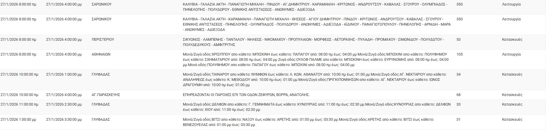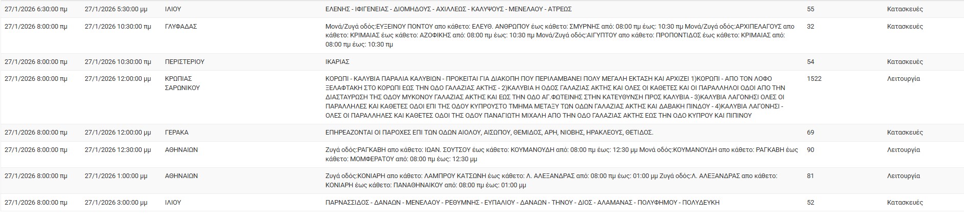 Διακοπές ρεύματος έχει προγραμματίσει για σήμερα, Τρίτη 27 Ιανουαρίου 2026, ο ΔΕΔΔΗΕ σε διάφορες περιοχές της Αττικής.