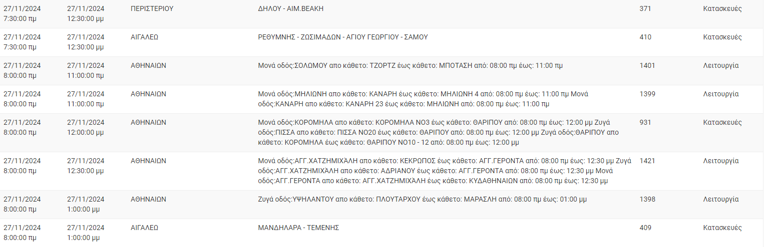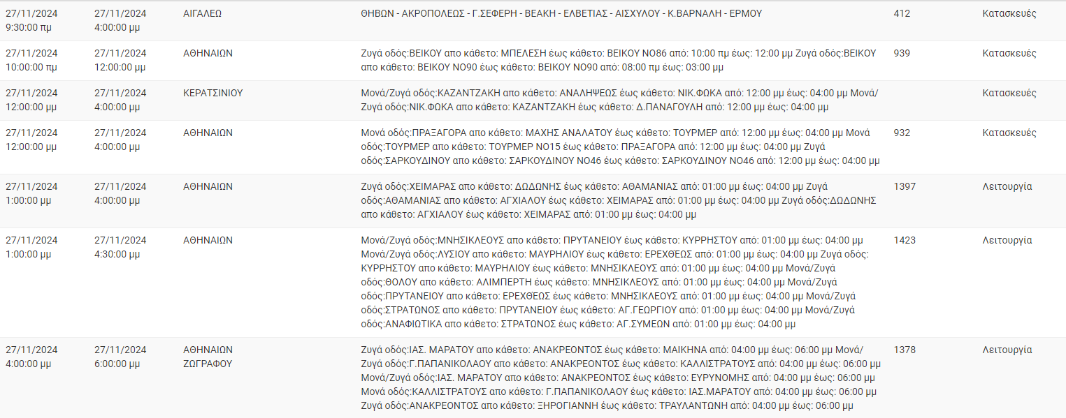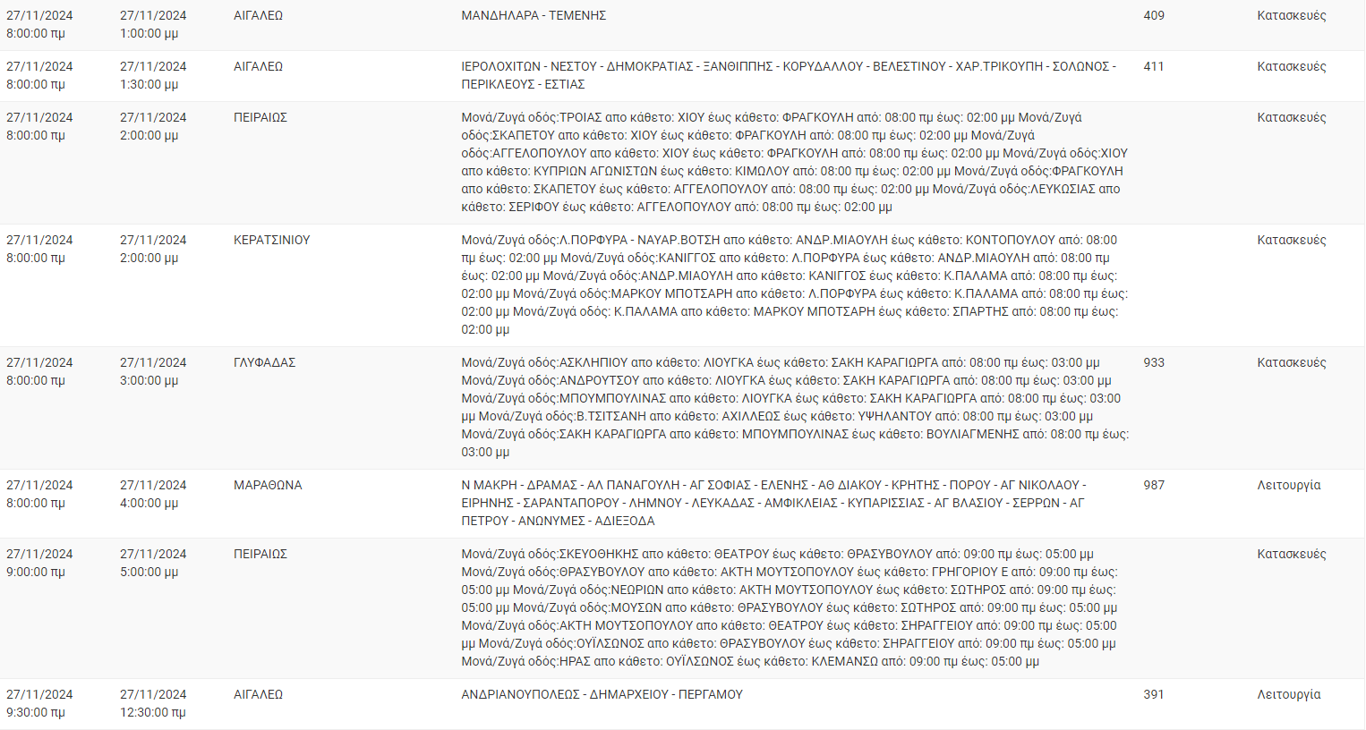 Διακοπές ρεύματος σήμερα (27/11) στην Αθήνα και σε άλλες 7 περιοχές της Αττικής