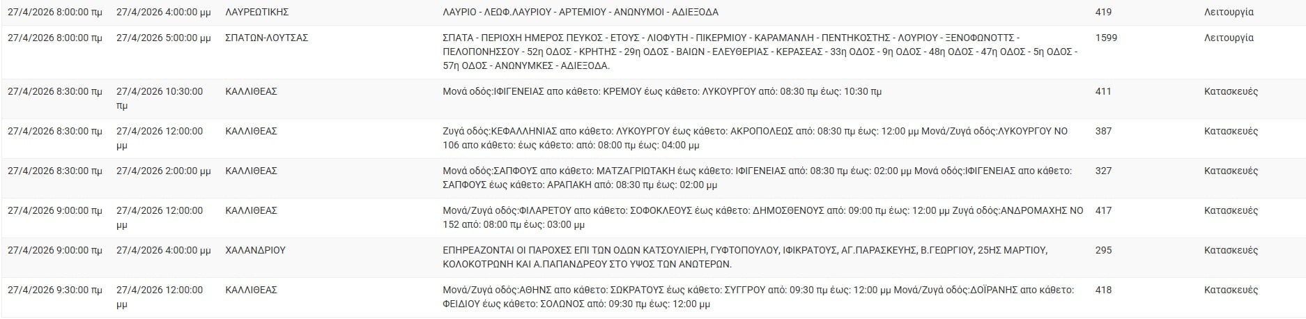 Διακοπές ρεύματος έχει προγραμματίσει για σήμερα, Δευτέρα 27 Απριλίου 2026, ο ΔΕΔΔΗΕ σε διάφορες περιοχές της Αττικής.