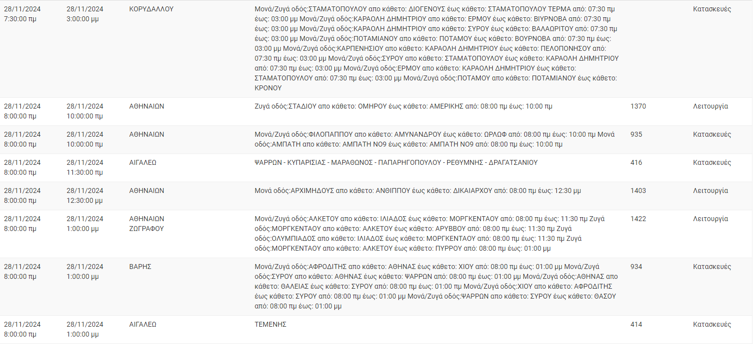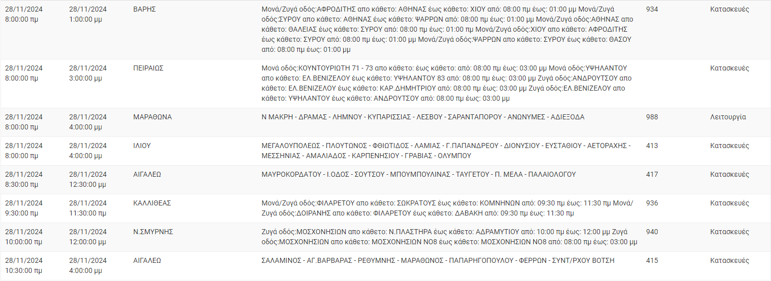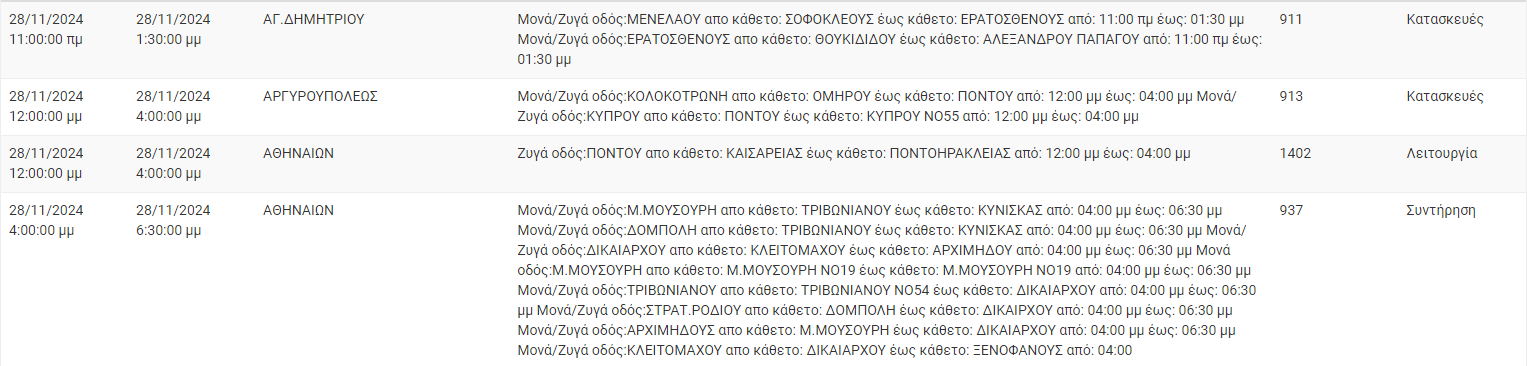 Διακοπές ρεύματος σήμερα (28/11) στην Αθήνα και σε άλλες 11 περιοχές της Αττικής