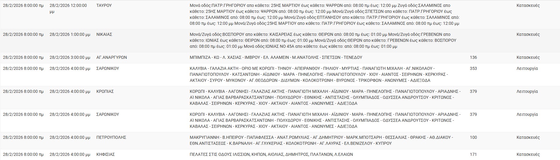 Διακοπές ρεύματος σήμερα (28/2) στην Αθήνα και σε άλλες 13 περιοχές της Αττικής