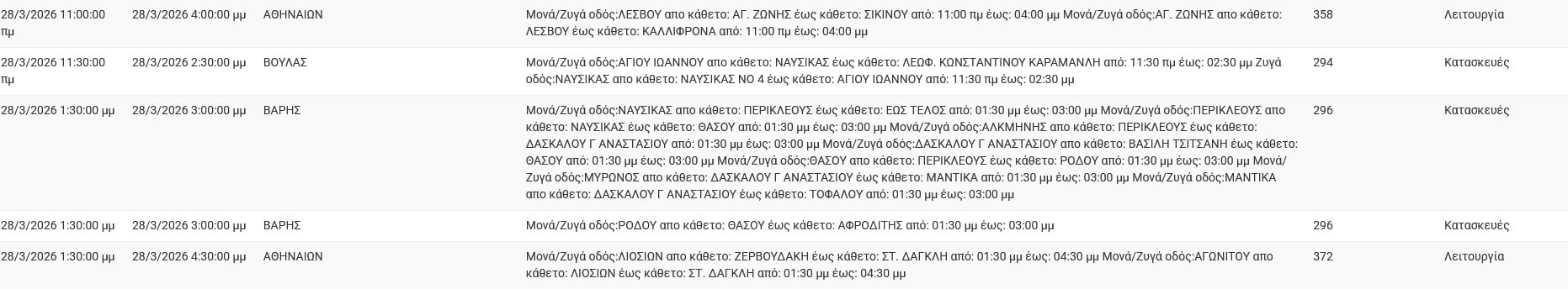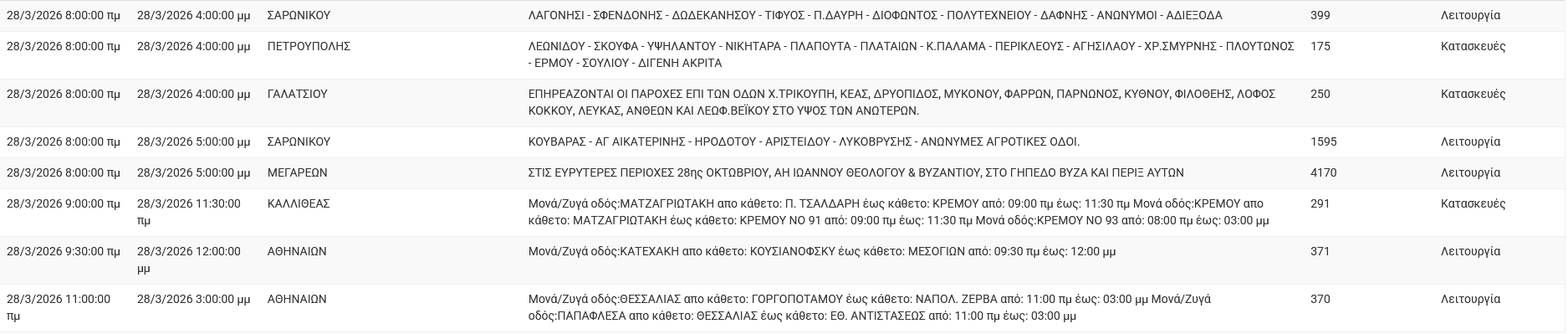 Διακοπές ρεύματος έχει προγραμματίσει για σήμερα, Σάββατο 28 Μαρτίου 2026, ο ΔΕΔΔΗΕ σε διάφορες περιοχές της Αττικής.