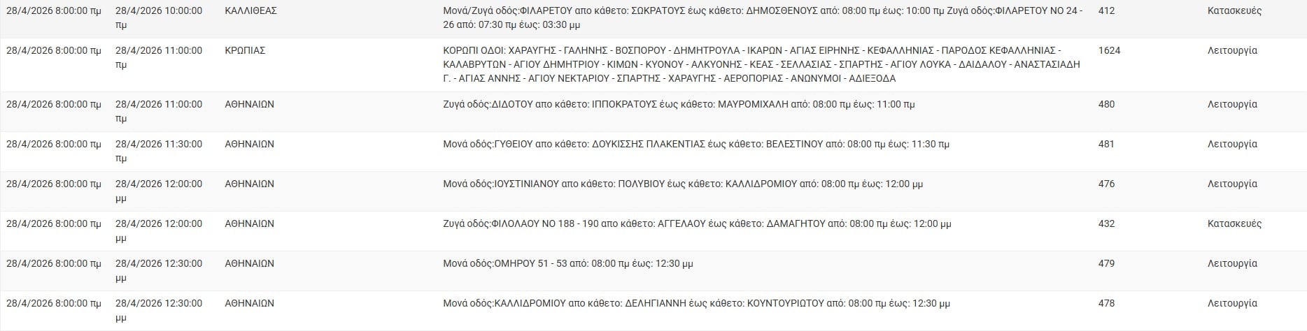 Διακοπές ρεύματος σήμερα (28/4) στην Αθήνα και σε άλλες 8 περιοχές της Αττικής
