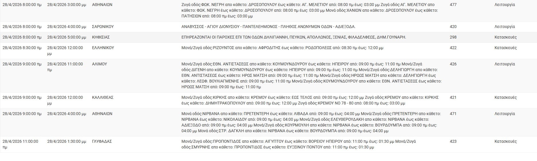 Διακοπές ρεύματος έχει προγραμματίσει για σήμερα, Τρίτη 28 Απριλίου 2026, ο ΔΕΔΔΗΕ σε διάφορες περιοχές της Αττικής.