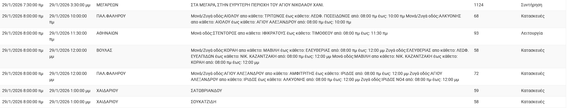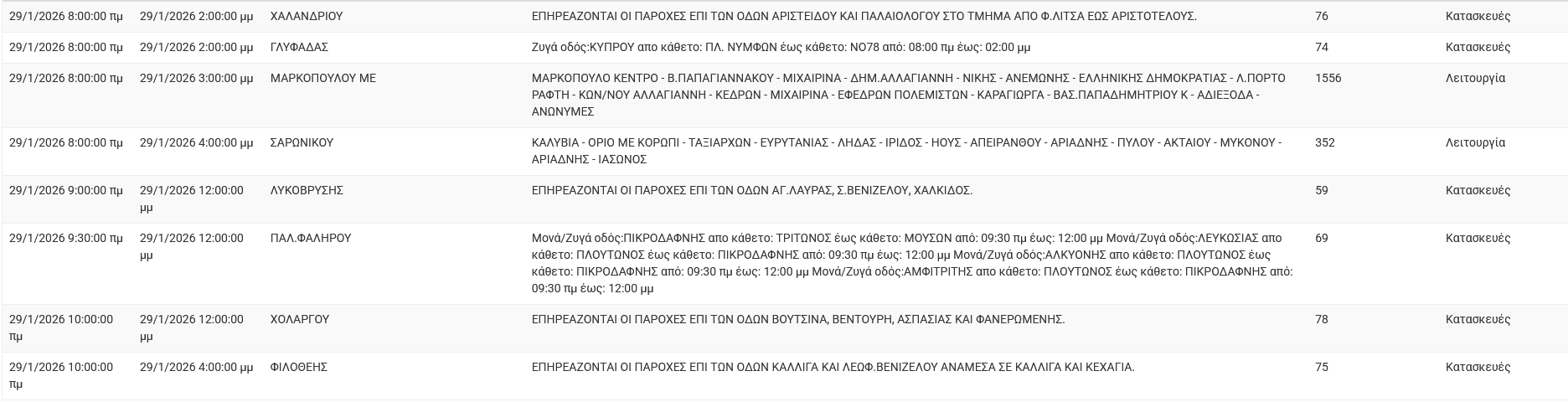 Διακοπές ρεύματος σήμερα (29/1) στην Αθήνα και σε άλλες 12 περιοχές της Αττικής