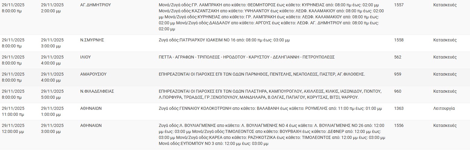 Διακοπές ρεύματος σήμερα (29/11) στην Αθήνα και σε άλλες 6 περιοχές της Αττικής
