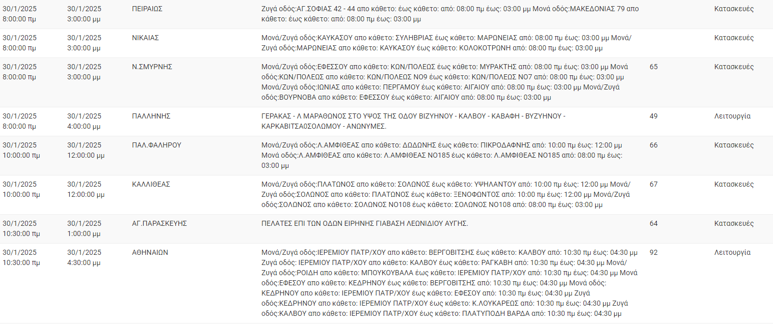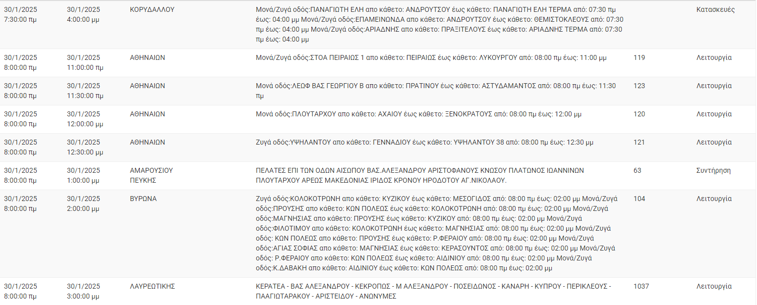 Διακοπές ρεύματος σήμερα (30/1) στην Αθήνα και σε άλλες 12 περιοχές της Αττικής