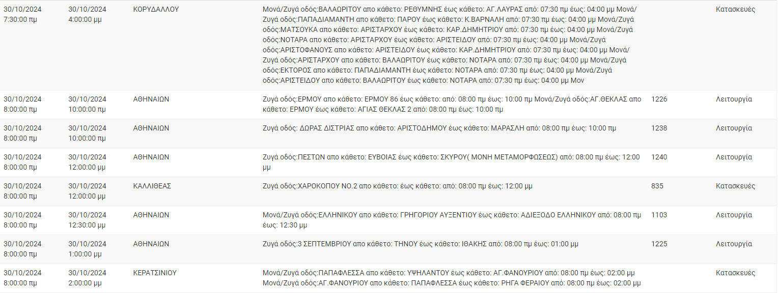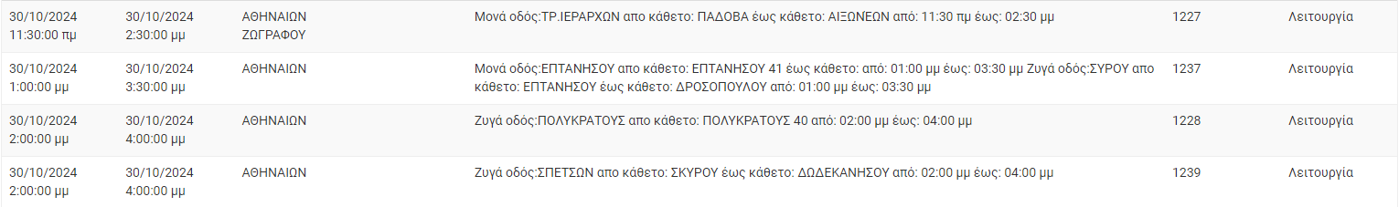 Διακοπές ρεύματος σήμερα (30/10) στην Αθήνα και σε άλλες 9 περιοχές της Αττικής