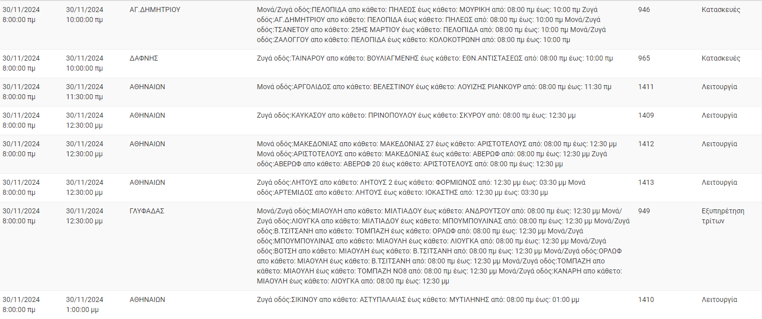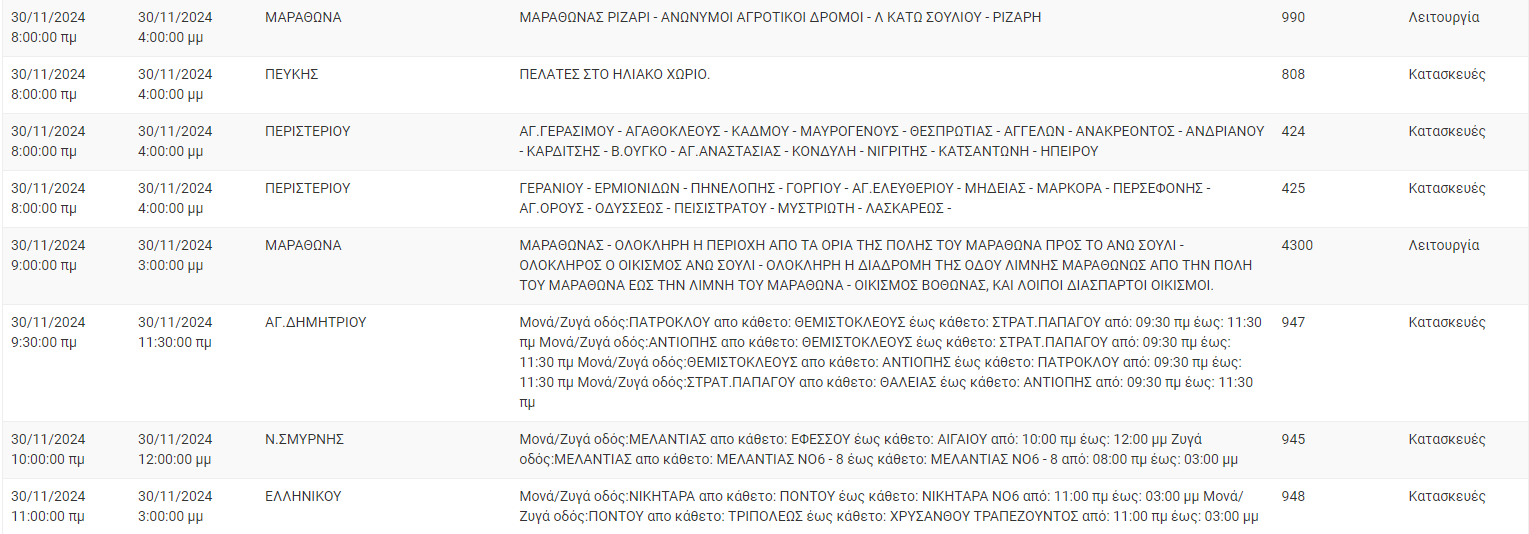 Διακοπές ρεύματος σήμερα (30/11) στην Αθήνα και σε άλλες 8 περιοχές της Αττικής