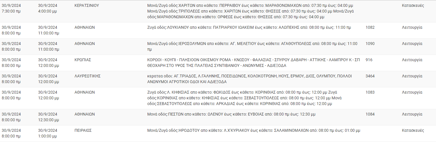 Διακοπές ρεύματος σήμερα (30/9) στην Αθήνα και σε άλλες 13 περιοχές της Αττικής