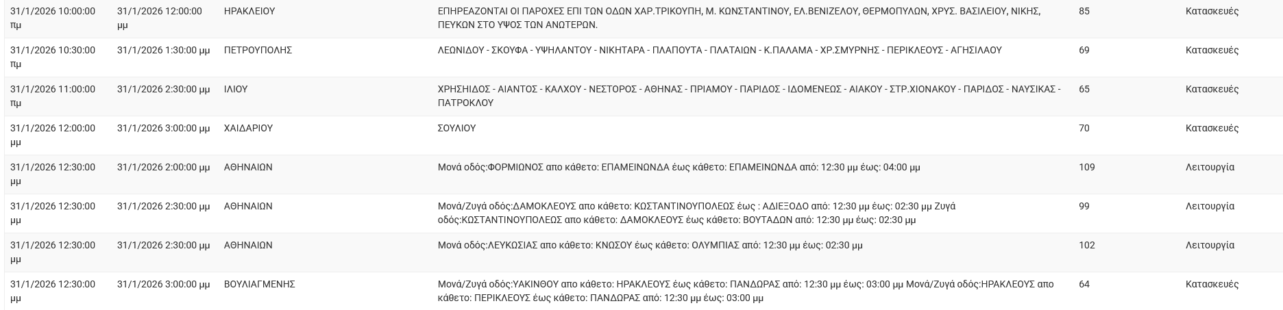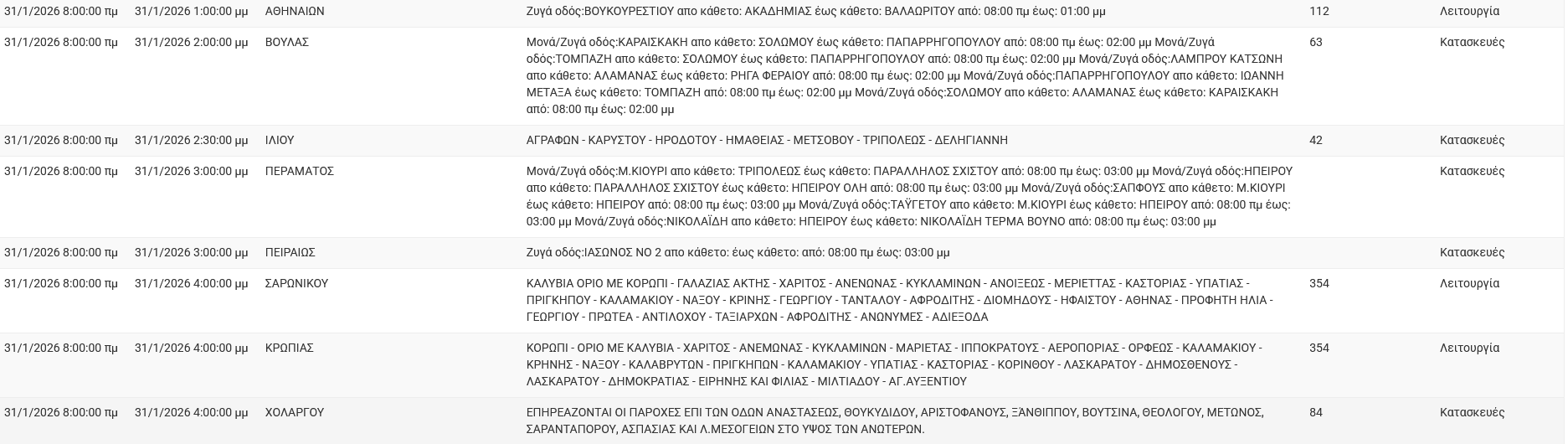 Διακοπές ρεύματος έχει προγραμματίσει για σήμερα, Σάββατο 31 Ιανουαρίου 2026, ο ΔΕΔΔΗΕ σε διάφορες περιοχές της Αττικής.