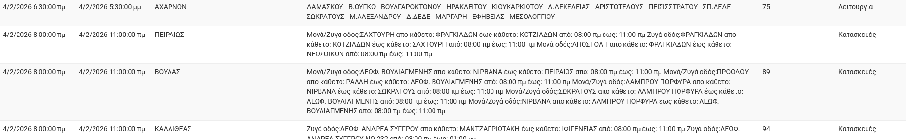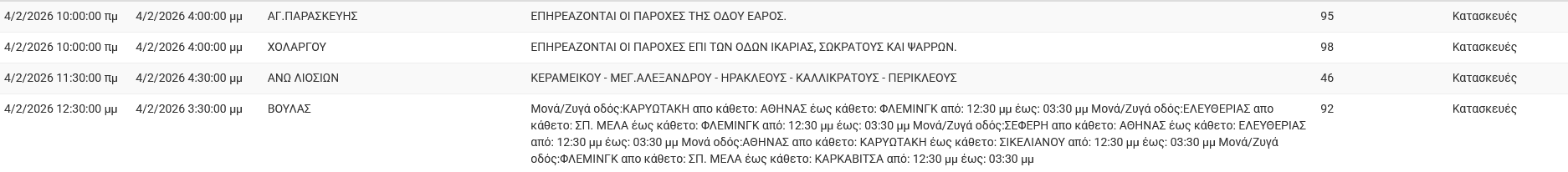 Διακοπές ρεύματος έχει προγραμματίσει για σήμερα, Τετάρτη 4 Φεβρουαρίου 2026, ο ΔΕΔΔΗΕ σε διάφορες περιοχές της Αττικής.