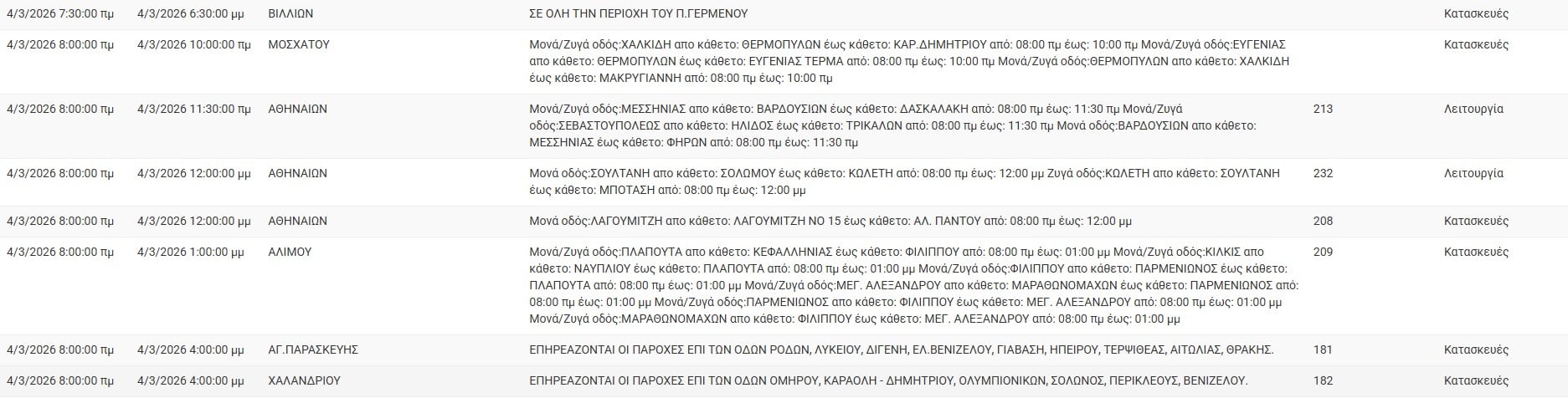 Διακοπές ρεύματος σήμερα (4/3) στην Αθήνα και σε άλλες 12 περιοχές της Αττικής