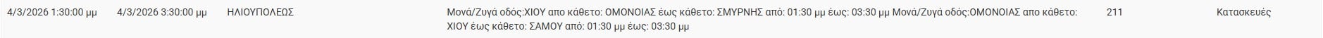 Διακοπές ρεύματος έχει προγραμματίσει για σήμερα, Τετάρτη 4 Μαρτίου 2026, ο ΔΕΔΔΗΕ σε διάφορες περιοχές της Αττικής.