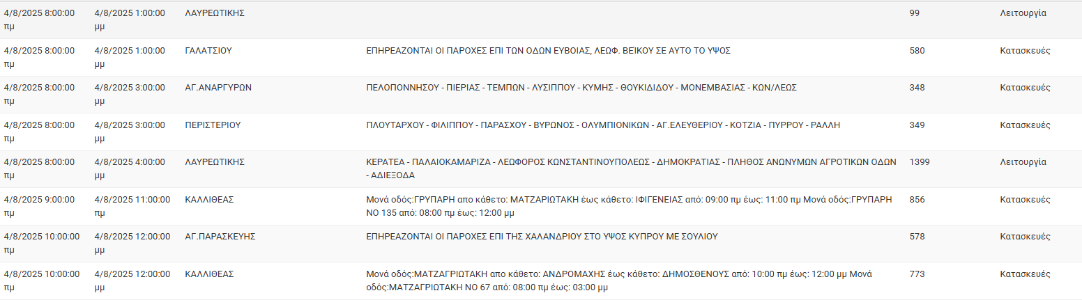 Διακοπές ρεύματος σήμερα (4/8) στην Αθήνα και σε άλλες 13 περιοχές της Αττικής