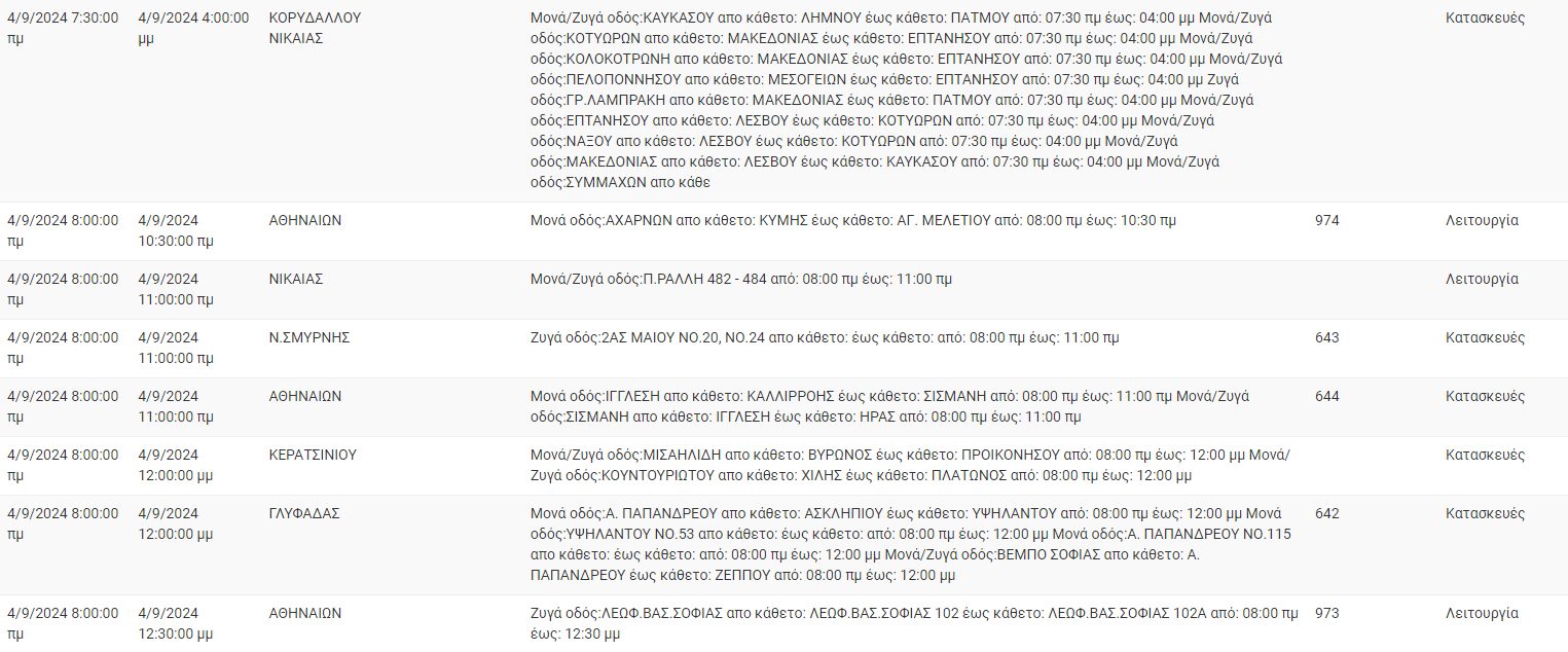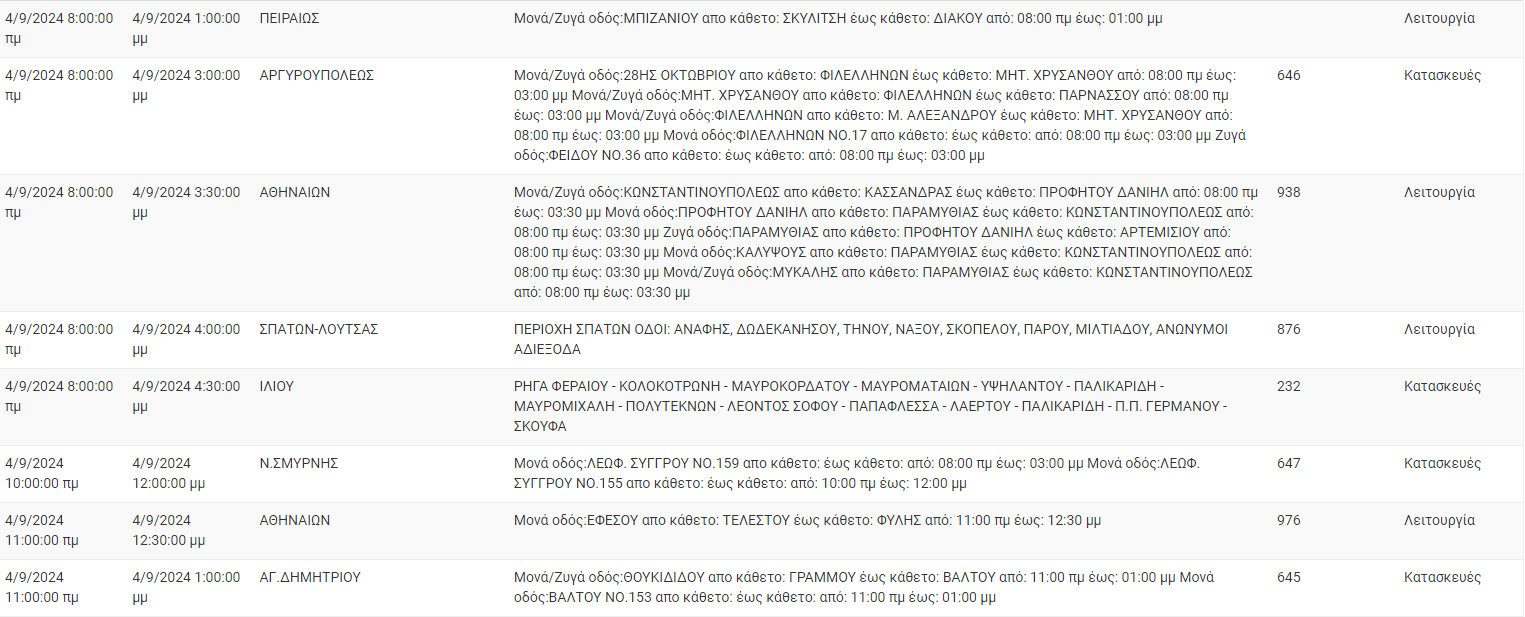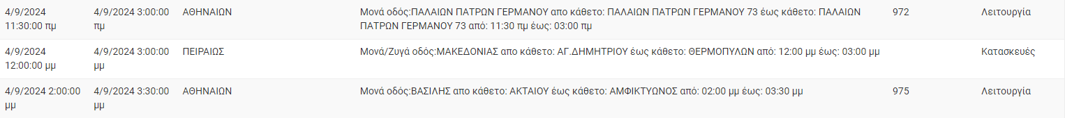 Διακοπές ρεύματος σήμερα (4/9) στην Αθήνα και σε άλλες 11 περιοχές της Αττικής