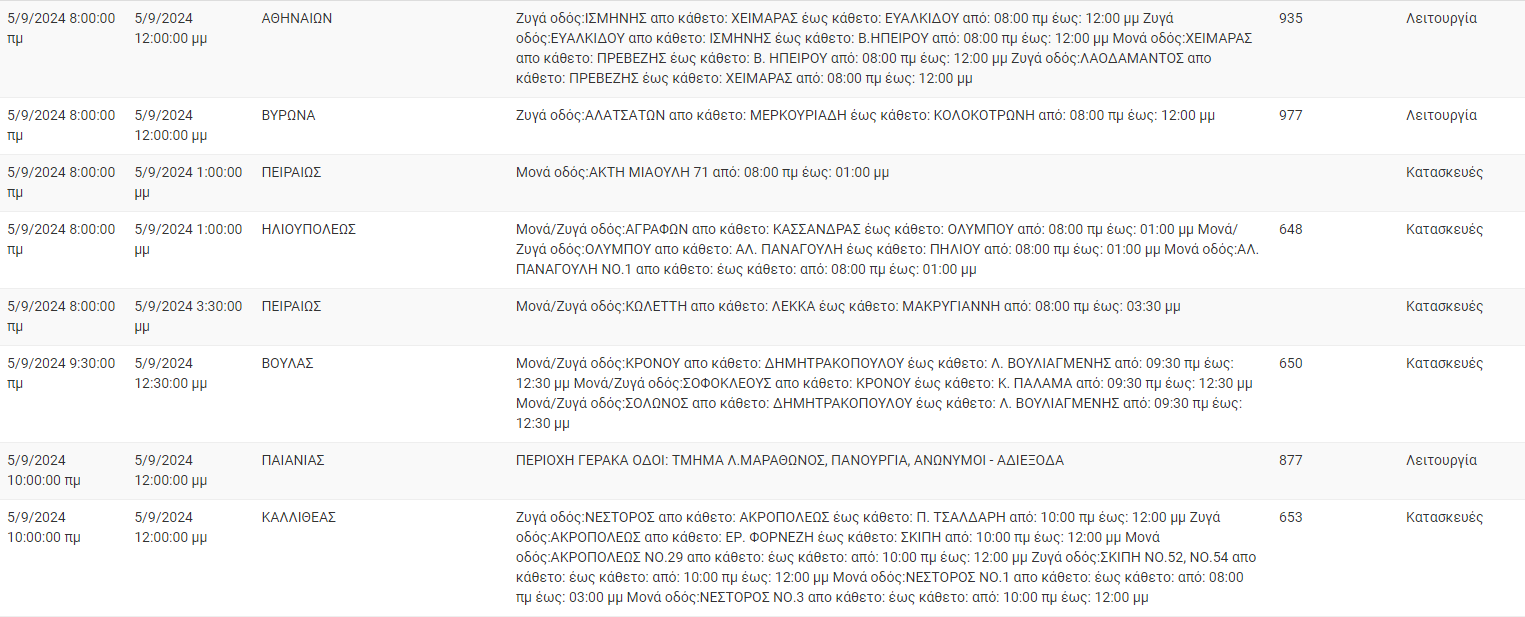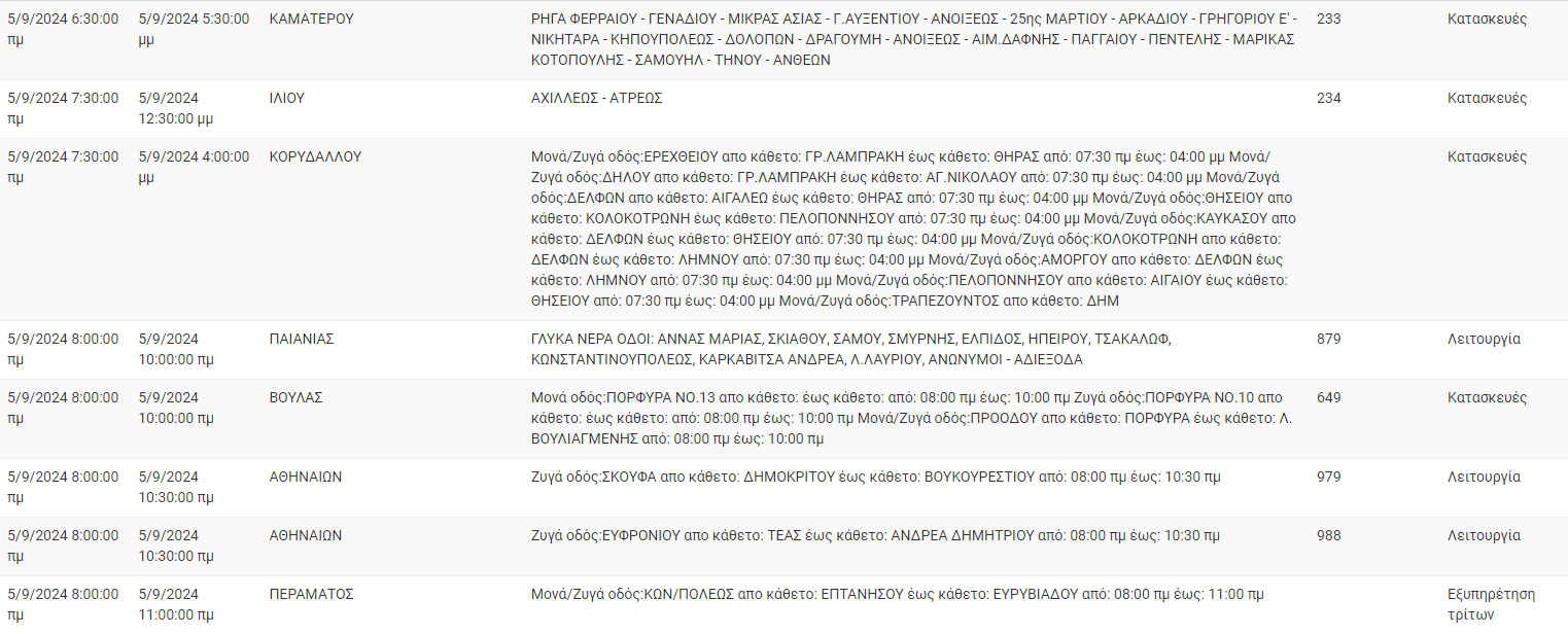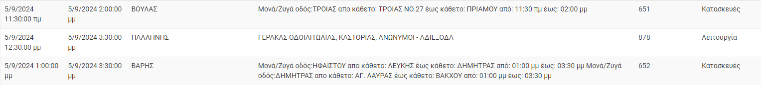 Διακοπές ρεύματος σήμερα (5/9) στην Αθήνα και σε άλλες 12 περιοχές της Αττικής