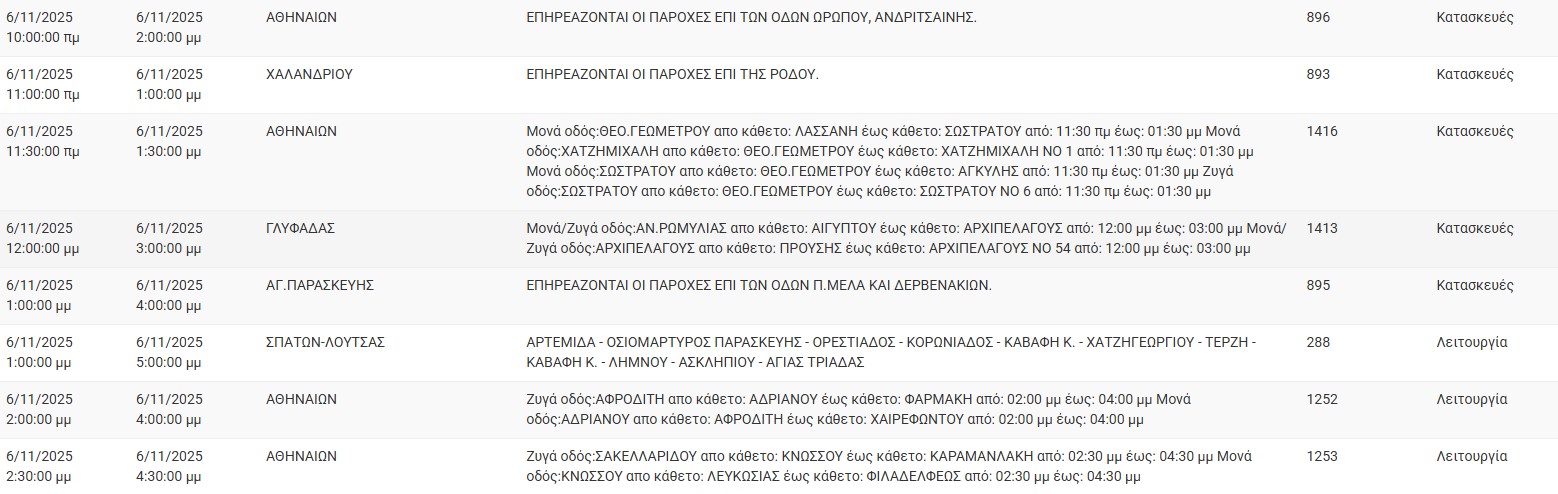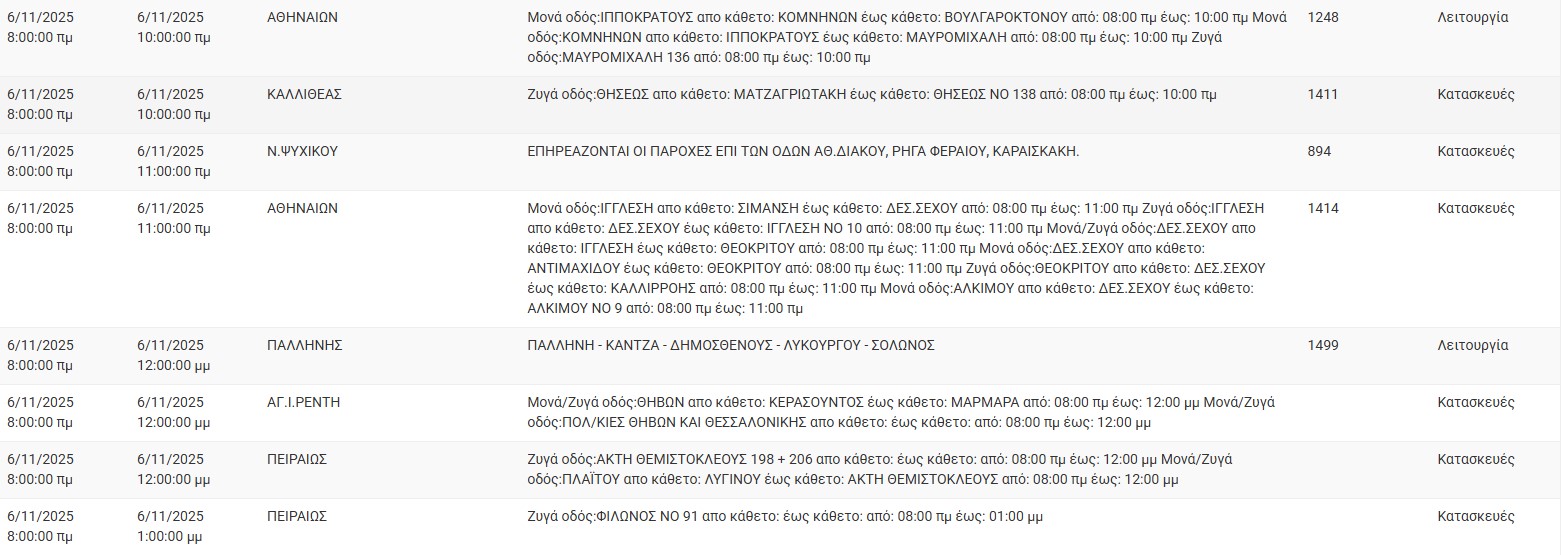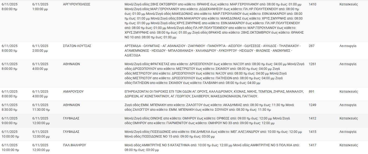 Διακοπές ρεύματος σήμερα (6/11) στην Αθήνα και σε άλλες 13 περιοχές της Αττικής