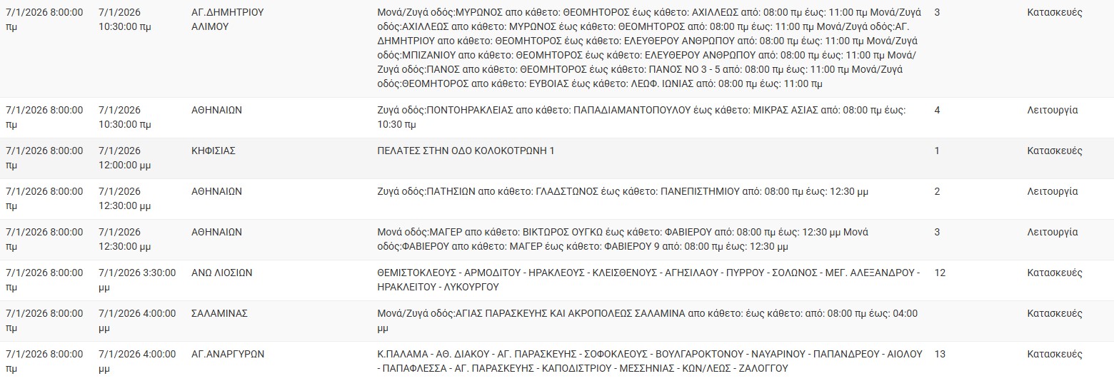 Διακοπές ρεύματος έχει προγραμματίσει για σήμερα, Τετάρτη 7 Ιανουαρίου 2026, ο ΔΕΔΔΗΕ σε διάφορες περιοχές της Αττικής.